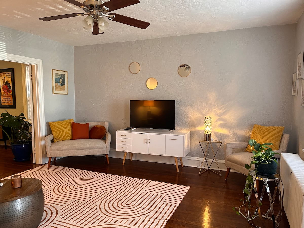 Enjoy this stylish apartment located in the Historic Arts District of Downtown Richmond. The apartment comfortably sleeps 4 adults and comes with all amenities that would make you feel right at home! No need to worry about parking, the apartment unit has a designated parking spot and a private entrance! Walking distance from an abundance of restaurants, bars, local boutiques, VCU, and the financial district. Guest can enjoy a large backyard and private courtyard, perfect for outdoor activities!