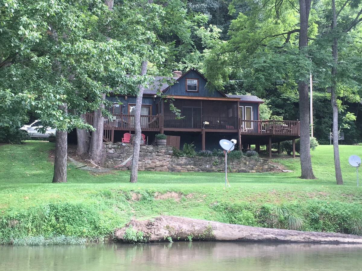 Waterfront retreat on the New River at the headwaters of Claytor Lake . Great for fishing, tubing, and boating. Directly across from Allisonia boat ramp and immediately adjacent to our other listing (Cozy Waterfront Cabin). Shared use of boat ramp located on the next lot. Large flat yard is perfect for outdoor activities beside the water. Nearby access to New River Trail. Well behaved dogs are allowed with prior approval. You must keep dog leashed during visit. Property has WiFi.