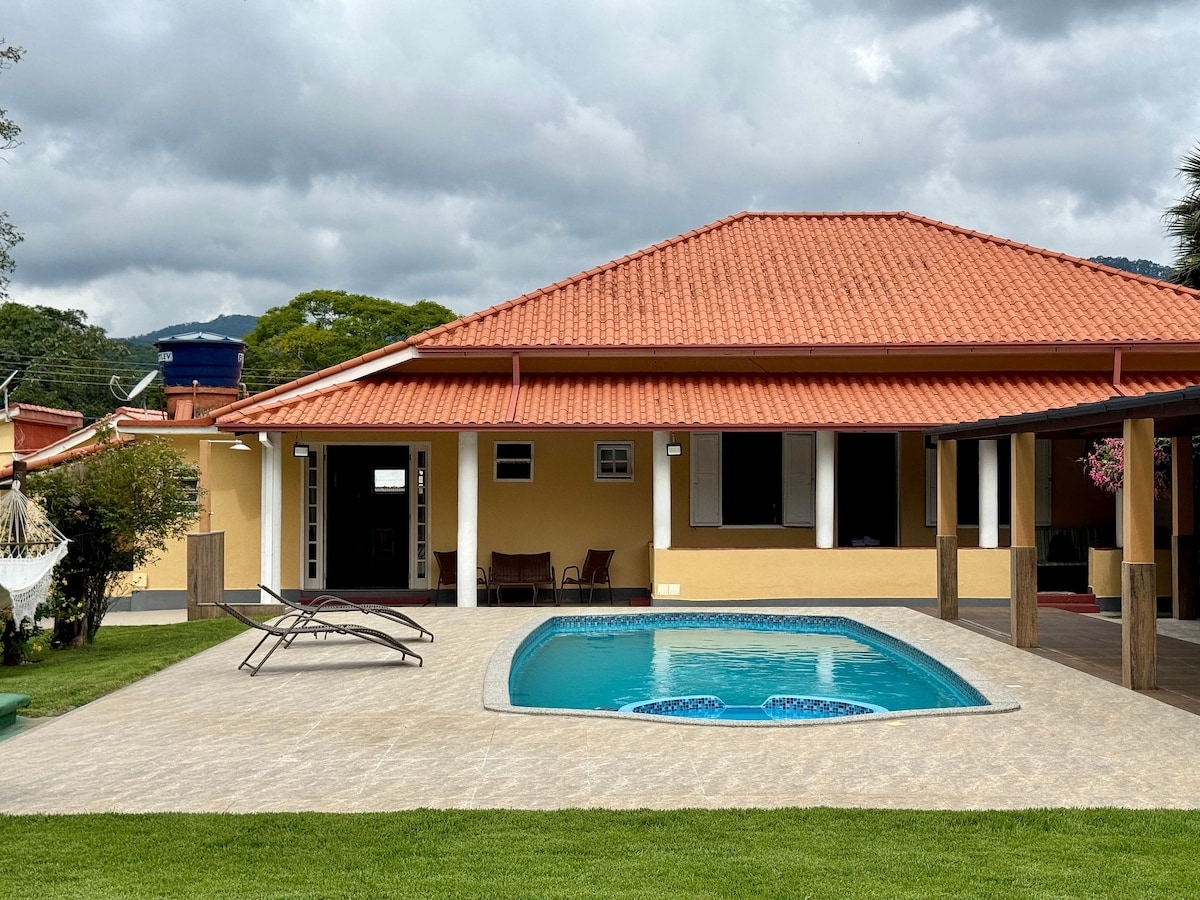 Chácara localizada na melhor rua da cidade a poucos passos do centro comercial. Área de lazer completa e totalmente privativa: piscina com aquecimento solar, churrasqueira, sauna, parquinho infantil e estacionamento próprio. Tudo isso cercado de verde e montanhas que proporcionam uma experiência única aos hospedes!