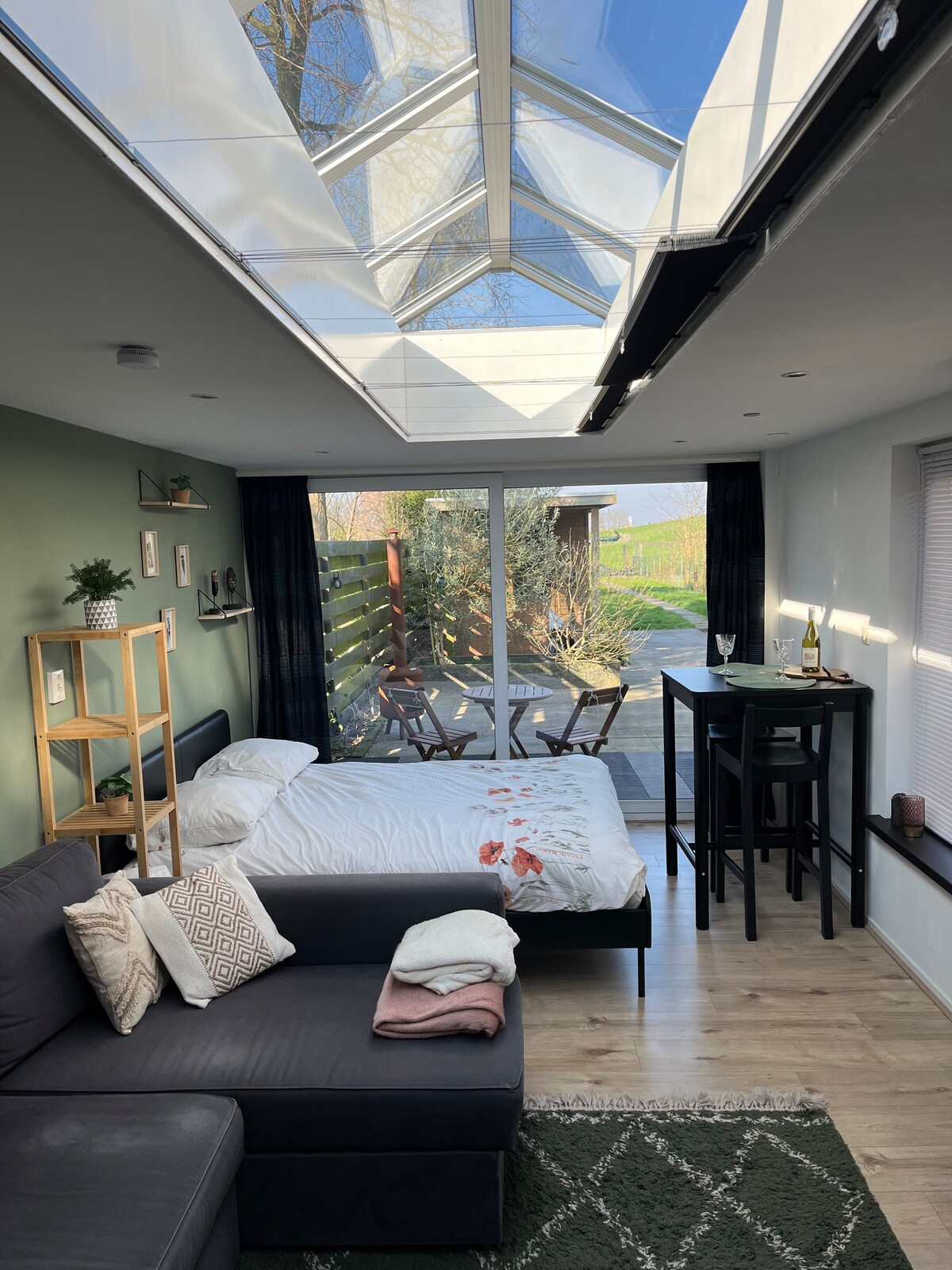 Το B&B είναι εξοπλισμένο με όλες τις σύγχρονες ανέσεις, όπως μοντέρνα κουζίνα, φωτισμό απόχρωσης Philips, έξυπνη τηλεόραση και Quooker. Η άνετη βεράντα είναι πλήρως εξοπλισμένη με πολυτελές τζακούζι και ξυλόσομπα. Το B&B με μεγάλο ιδιωτικό κήπο και ανεμπόδιστη θέα προστατεύεται πλήρως από την αγροικία από έναν φράχτη και είναι προσβάσιμο μόνο σε εσάς ως επισκέπτη. Από τη φινλανδική σάουνα βαρελιών στην παρακείμενη βεράντα, μπορείτε να δείτε τα γραφικά λιβάδια της πόλης. Ένα νόστιμο πρωινό που σας αρέσει είναι προαιρετικό.