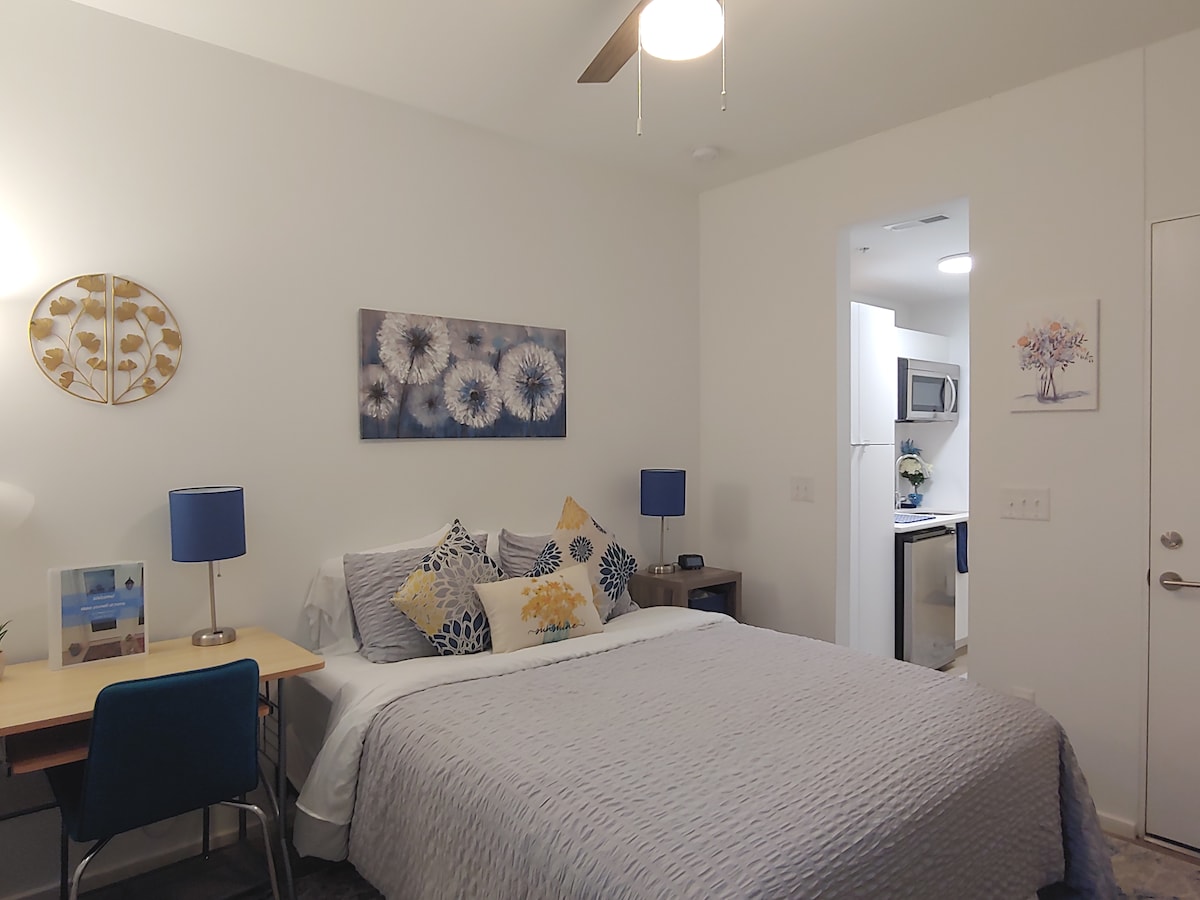 Συμπαγές στούντιο λίγα βήματα από το κέντρο του Ντάραμ με ιδιωτική είσοδο και δωρεάν πάρκινγκ στον δρόμο! Πλήρως εξοπλισμένη μικρή κουζίνα και μπάνιο. Κοντά στο Duke και σε κοντινή απόσταση με τα πόδια από όλο το κέντρο της πόλης και πολλά άλλα: ✦ 7+ καφετέριες ✦ 10+ ζυθοποιεία ✦ Πολλά εστιατόρια + μπαρ ✦ DPAC, Durham Bulls + Συνεδριακό κέντρο Durham ✦ Central Park, Farmer 's Market + Durham Food Hall ✦ Ellerbe Creek + Αμερικανικά μονοπάτια καπνού Μένουμε στο αρχοντικό πάνω από το στούντιο και θα χαρούμε να σας βοηθήσουμε με ό,τι χρειαστείτε.