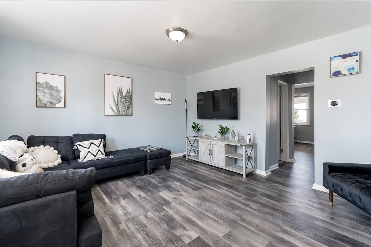 - Ηλιόλουστο οικογενειακό δωμάτιο με ηλεκτρικό εντοιχισμένο τζάκι και έξυπνη τηλεόραση - Τραπεζαρία για 6 άτομα, έξυπνη τηλεόραση, ηλεκτρικό τζάκι και επιλογές πολλαπλού φωτισμού για τη λειτουργία - Πλήρως εξοπλισμένη κουζίνα, μπαρ καφέ, μπαρ γονάτων. - 2ο οικογενειακό δωμάτιο με καναπέ-κρεβάτι, ιδιωτικό μπάνιο, βιβλία, παιχνίδια, πλυντήριο ρούχων. - 2 υπνοδωμάτια στον επάνω όροφο με ανεμιστήρες οροφής, έξυπνες τηλεοράσεις. - Κοινό πλήρες μπάνιο με μπανιέρα και ντους. - Ιδιωτικό πάρκινγκ για 2. - Κλασικά καθίσματα μπροστινής βεράντας. - Κεντρική τοποθεσία με πολλές επιλογές εστιατορίων. Χαιρόμαστε πολύ που θα σας φιλοξενήσουμε. Κάντε κράτηση τώρα ή ρωτήστε με οτιδήποτε