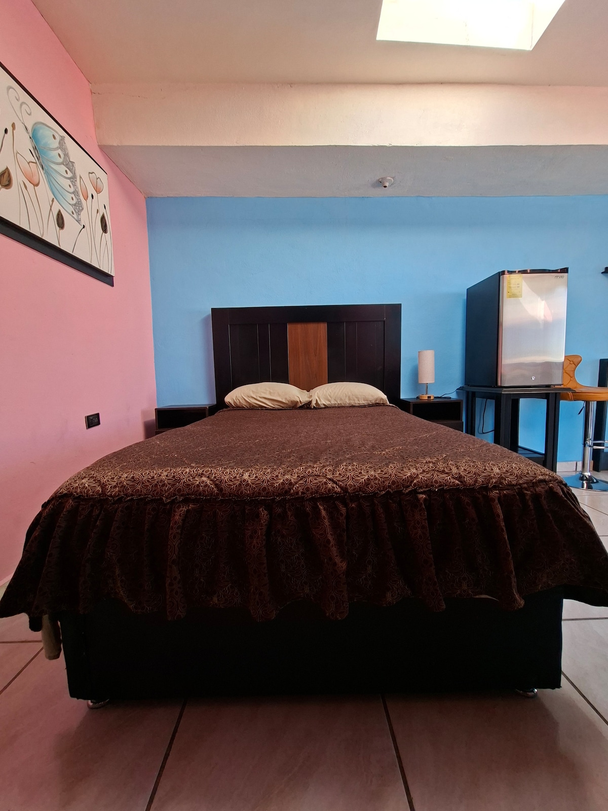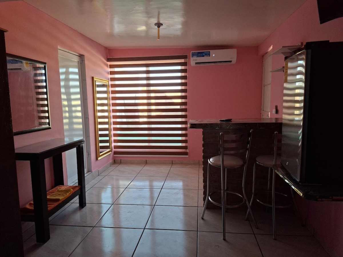 Disfruta de la sencillez de este alojamiento tranquilo y céntrico, entra a las 12:00pm del día a las 12:00pm del día siguiente, incluye área de lavado y área para cocinar, y con posibilidad de anexarse una habitación más para familia grande, el costo seria $600 la noche con habitación extra.