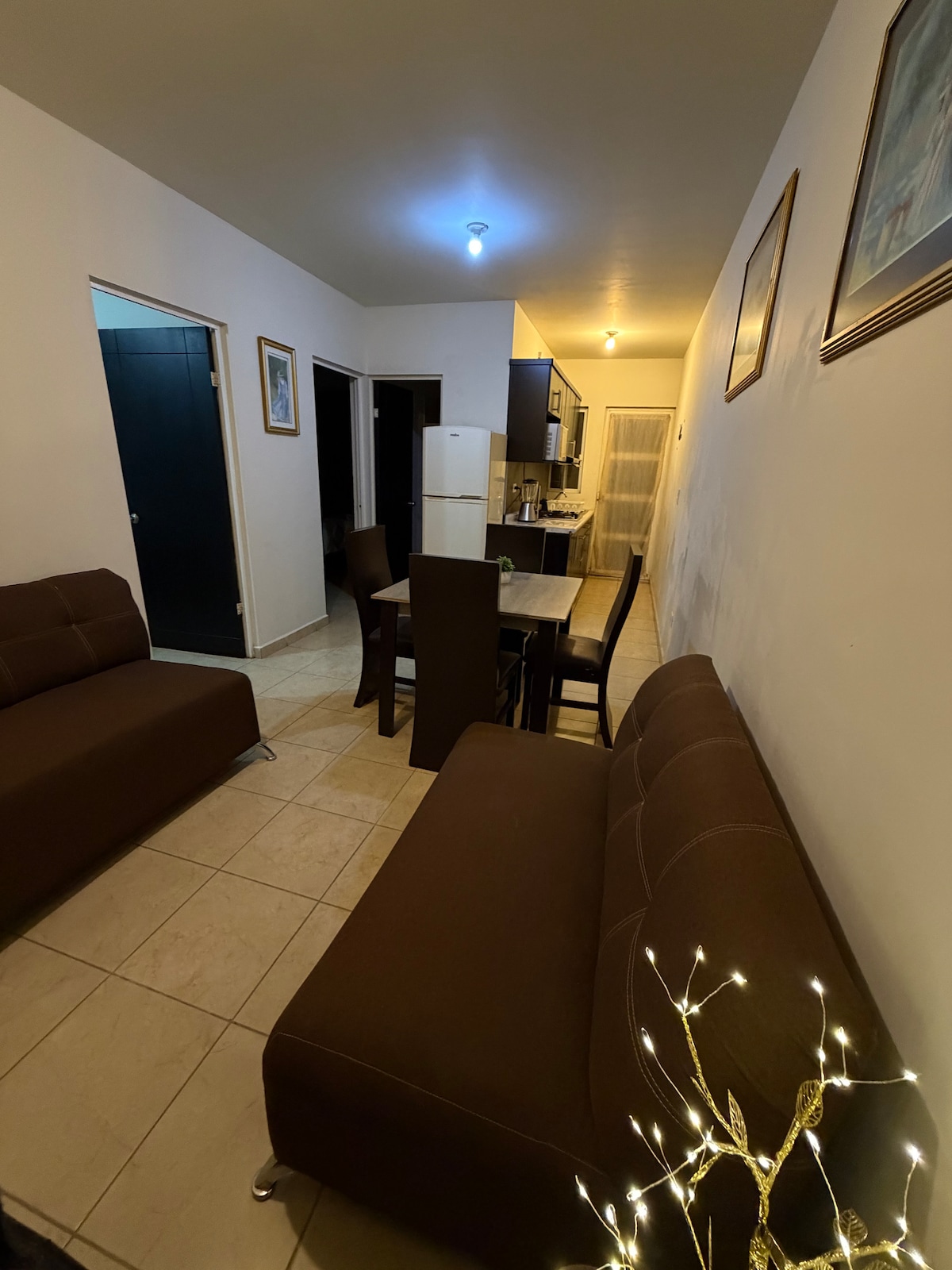 Cómodo departamento de 2 habitaciones y un baño, cuenta con un sofa cama matrimonial y 2 camas matrimoniales. Se encuentra en area céntrica con centros comerciales, cine, 10 minutos al centro en auto. El fraccionamiento es privado y cuenta con acceso controlado. Hay escaleras para subir al departamento.