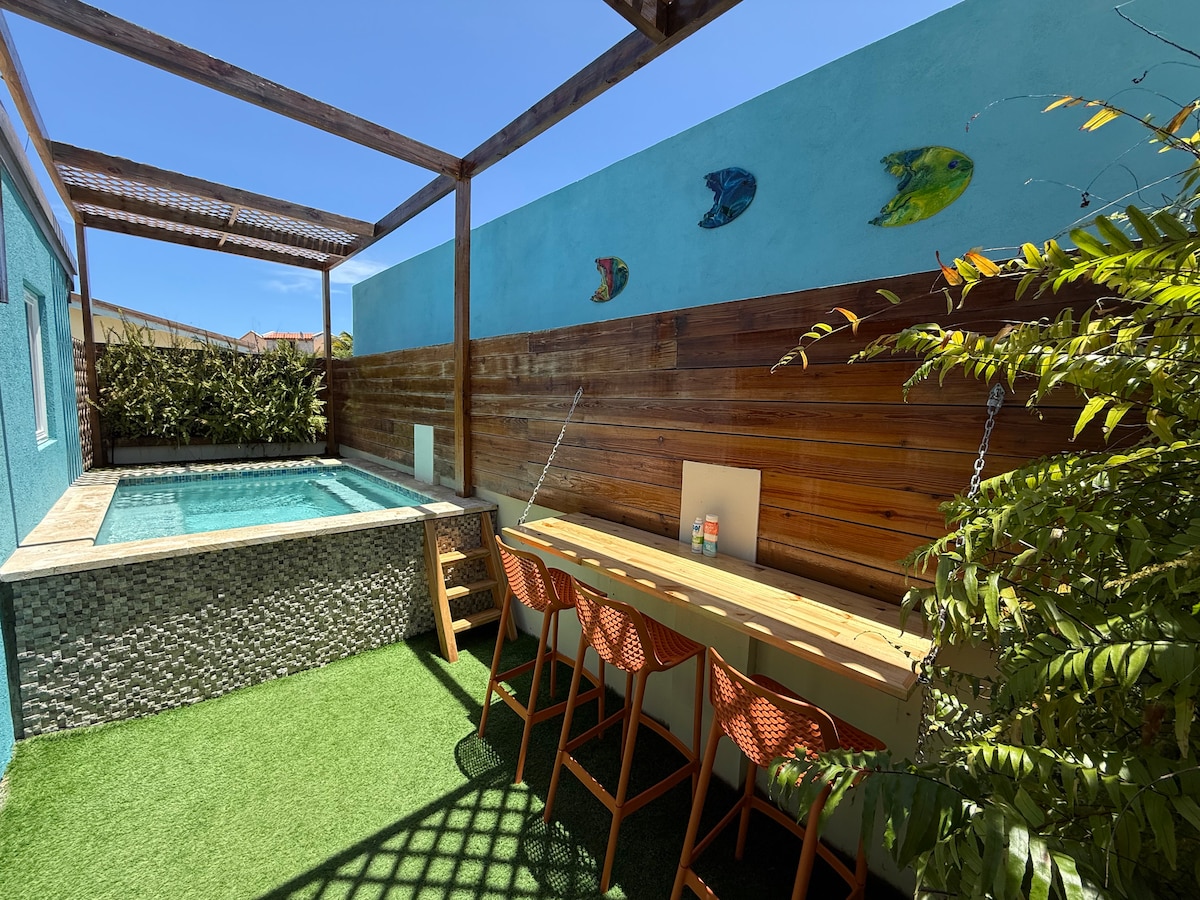 Αυτός ο μοναδικός χώρος έχει το δικό του στιλ. Τα ζευγάρια μπορούν να απολαύσουν μια διαμονή σε αυτό το άνετο ενοικιαζόμενο κατάλυμα για διακοπές, το οποίο περιλαμβάνει ιδιωτική πισίνα και εξωτερικό αίθριο. Το Sun Experience απέχει μόλις 5 λεπτά με το αυτοκίνητο από τη διάσημη παραλία Eagle Beach και Palm Beach, καθώς και από τα κορυφαία εστιατόρια, καζίνο και νυχτερινή ζωή του νησιού. Το διαμέρισμα είναι εξοπλισμένο με ένα άνετο υπέρδιπλο κρεβάτι και πλήρως εξοπλισμένη μικρή κουζίνα που σας επιτρέπει να φτιάχνετε γεύματα στο σπίτι. Παρέχουμε επίσης καρέκλες παραλίας, πετσέτες και ψυγείο για τις ημέρες στην παραλία.