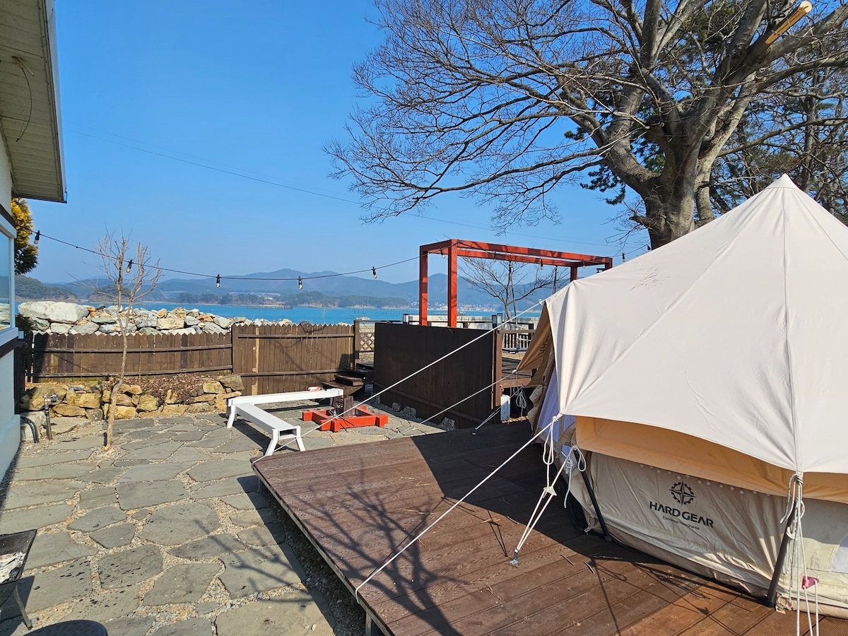Το κατάλυμα με κήπο είναι ένα ιδιωτικό εξοχικό με έναν πολύ όμορφο μεγάλο κήπο που βρίσκεται περίπου στη μέση του Μουσείου Γιουρισόμ της Ντάεμπου-ντο και του ιππικού κέντρου Βεραντέλ. Νιώστε την θεραπεία στον κήπο με την ανοιχτή θέα και το σπίτι από τούβλα από κόκκινο πηλό. Εάν έχετε εξοπλισμό κάμπινγκ που δεν έχετε χρησιμοποιήσει ακόμα, μπορείτε να τον εγκαταστήσετε στο γρασίδι και να απολαύσετε την αίσθηση. Ειδικότερα, οι πίνακες που ζωγράφισε ο ιδιοκτήτης είναι εκτεθειμένοι σε όλο το σπίτι, οπότε μπορείτε να νιώσετε μια μικρή διασκέδαση και συγκίνηση. Μπορείτε να απολαύσετε φρεσκοψημένο κρέας από την ψησταριά μπάρμπεκιου που βρίσκεται στη βεράντα, καθώς και διάφορα λαχανικά που καλλιεργούνται στον κήπο του καταλύματος. Μπορείτε να ψαρέψετε με τα παιδιά σας στην παραλία κοντά στο κατάλυμα και να ζήσετε την εμπειρία της αμμουδιάς. Αφήστε τα παιδιά να παίξουν σε τραμπολίνο, παιδική πισίνα και δεντρόσπιτο. Το κουρασμένο σώμα και το μυαλό σας θα θεραπευτούν. [Ερωτήσεις] ID καναλιού KakaoTalk: Daebu Garden Art Pension Λογαριασμός Instagram: Κατοικία Art Garden στο Νταεμπουντό (artgardenpension)