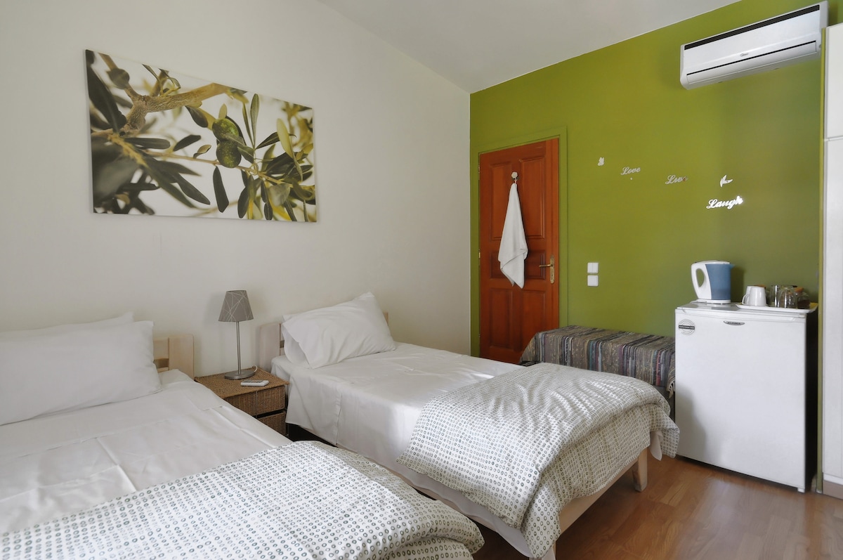 We offer a very comfortable and homely double/triple (air-conditioned) room (30sqm) in a charming Bed & Breakfast in the southern suburbs of Athens. The room has an independent entrance as well as direct access to our beautiful garden where our guests can relax and enjoy the renowned Greek sun throughout their stay. The room has a private en-suite with shower and a private study/sitting room which can accommodate 1 more bed upon request. A fridge is also provided in the study/sitting room.