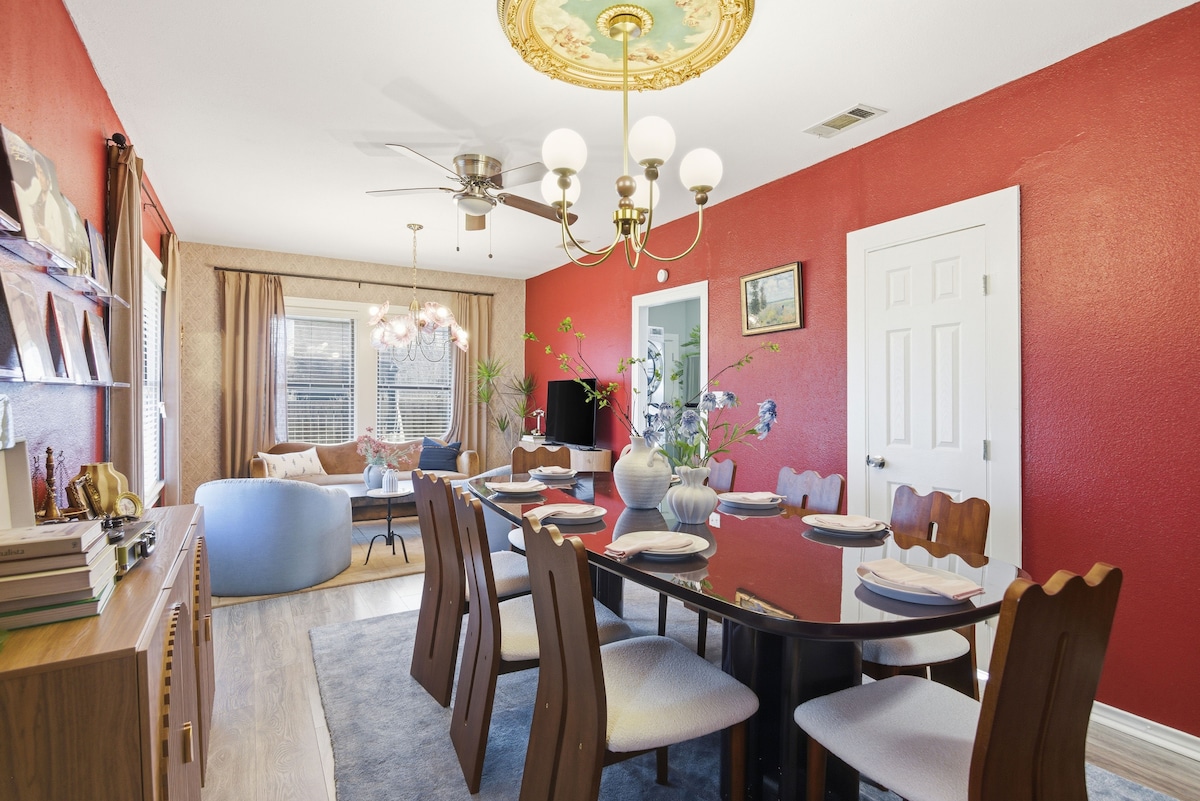 Welcome to our charming & eclectic home in the heart of East Austin, Texas - the perfect oasis for your time here! This delightful retreat is designed to provide a unique and memorable experience for travelers seeking comfort and convenience while exploring the vibrant city. * Steps away from coffee shops, sushi, breweries, and the Sarah Lounge! * 10-12 min drive to downtown, Austin-Bergstrom Airport, Moody Center, UT Campus, & Red River District * 20 min drive to COTA