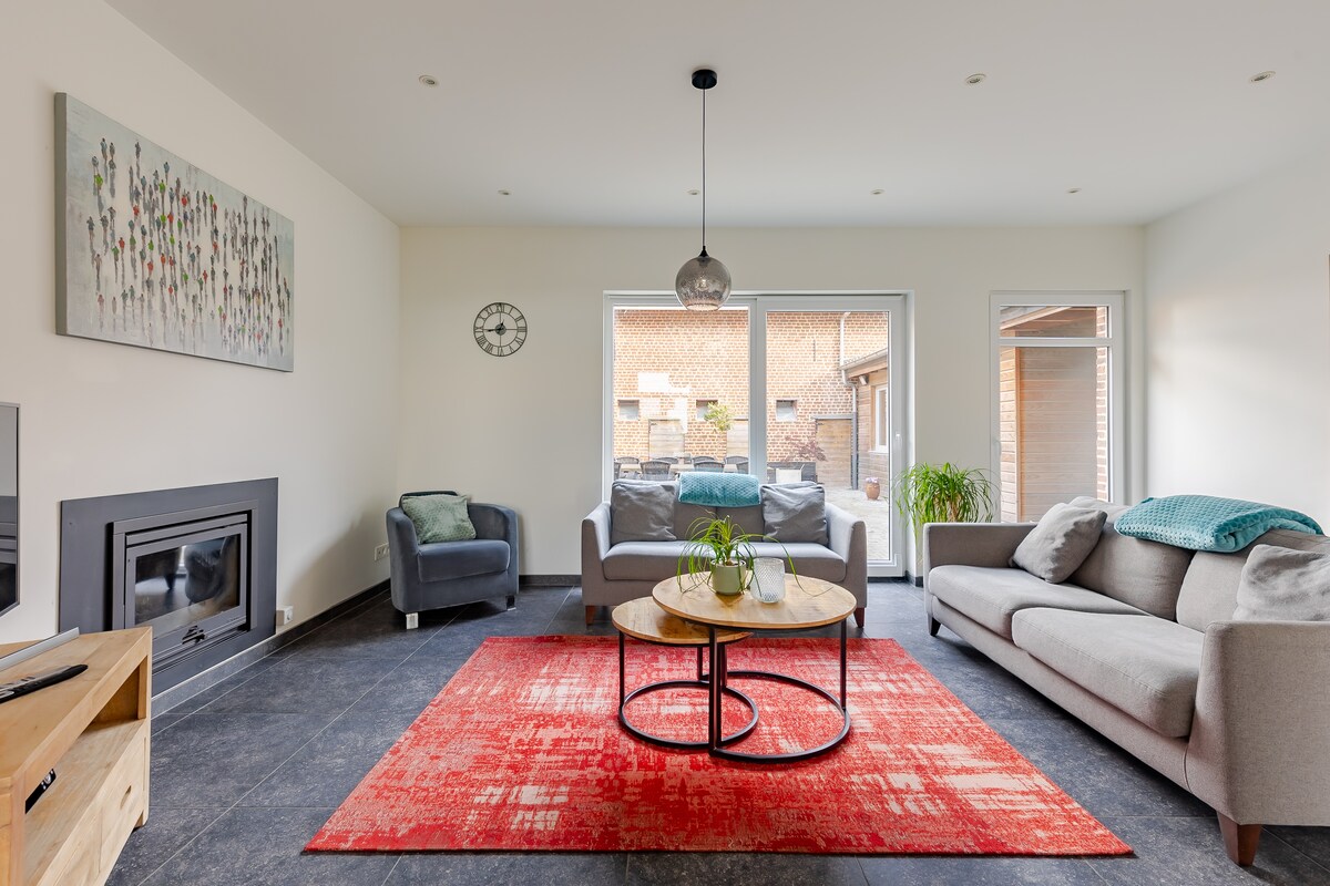 Καλαίσθητα ανακαινισμένο εξοχικό σπίτι σε παλιό αγρόκτημα. Ιδανικό για οικογένειες ή παρέες έως 13 άτομα. Καθιστικό με τζάκι, κουζίνα/τραπεζαρία με μεσογειακό στιλ και 6 υπνοδωμάτια κάτω από τα παλιά δοκάρια (το ένα, για 1 άτομο, είναι ανοιχτό, οπότε έχει λιγότερη ιδιωτικότητα). Υπάρχει ένα μεγάλο πολυχώρος 6,8 x 8,6 τ.μ. που μπορεί να χρησιμοποιηθεί για συναντήσεις και μαθήματα. Ο κήπος και η ταράτσα έχουν φανταστική θέα. Αυθεντικά διακοσμημένη, ζεστή ατμόσφαιρα. Υπέροχο περπάτημα και ποδηλασία στις Φλαμανδικές Αρδέννες.