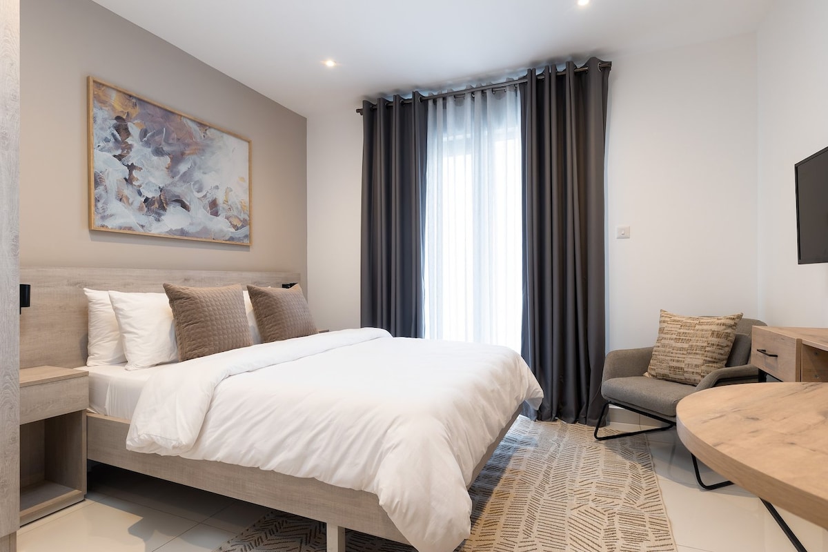 Your extraordinary Accra experience begins here. Book now and see why guests say ‘home away from home only gets better.’ Access to rooftop pool and gym. This stylish unit in Airport Residential offers hotel-level comfort. Enjoy a queen bed, vibrant yellow sofa, smart TV, fast Wi-Fi, cool AC, kitchenette, and a calm balcony. Walk safely to Airport City, restaurants, malls, cafés and Roman Ridge. 5-10 mins drive to airport. Perfect for business travelers, couples, solo guests and weekend escapes