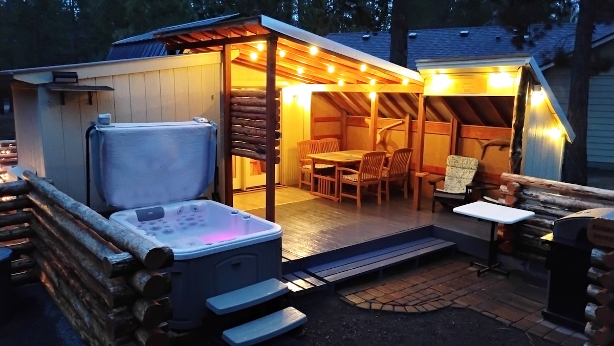 Το κατάλυμά μας είναι φτιαγμένο στα μέτρα μας και βρίσκεται μέσα στο δάσος με μια εξοχική αίσθηση, αλλά κοντά σε όλα όσα έχει να προσφέρει το Bend. Έξω, έχουμε δύο μεγάλες βεράντες με θέα την άγρια ζωή και όμορφη θέα στο βουνό. Μέσα σε αυτό το στούντιο 1100 τετραγωνικών ποδιών με σοφίτα, έχουμε θολωτά ταβάνια με ανοιχτά δοκάρια, ένα τραπέζι μπιλιάρδου, κυνηγετικά τρόπαια και χειροποίητα ξύλινα έπιπλα σε όλο το κατάλυμα. Θα έχετε ένα ιδιωτικό στούντιο χωρίς κοινόχρηστους χώρους που περιλαμβάνει δύο διπλά κρεβάτια, κουζίνα, σαλόνι, μπάνιο, δύο βεράντες και τζακούζι.