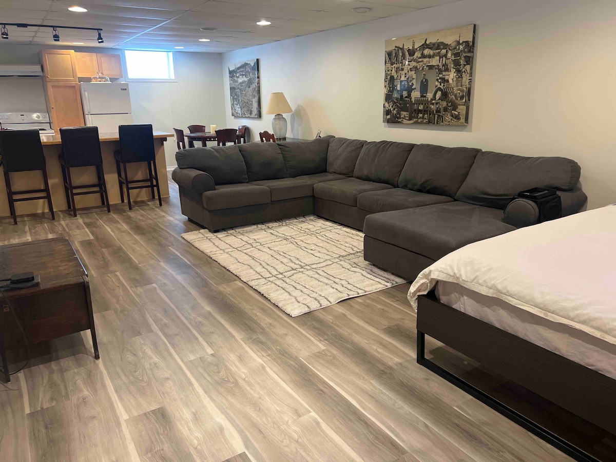 ΠΡΟΣΦΑΤΑ ΑΝΑΚΑΙΝΙΣΜΈΝΟ!!! Είναι μια σουίτα στο υπόγειο του σπιτιού μου. Πολύ καθαρό, φωτεινό με όλα όσα χρειάζεστε, καθώς και χρήση κοινόχρηστου πλυντηρίου και στεγνωτηρίου. Ιδιωτική πρόσβαση από την πίσω πόρτα. Επίσης, υπέροχη πίσω αυλή και μπάρμπεκιου για το καλοκαίρι. Τηλεόραση 52 ιντσών με τεράστιο γωνιακό καναπέ αν θέλετε να χαλαρώσετε. Υπάρχει ένα διπλό κρεβάτι με άνετα κλινοσκεπάσματα και πολλές επιπλέον κουβέρτες, αν χρειαστεί.
