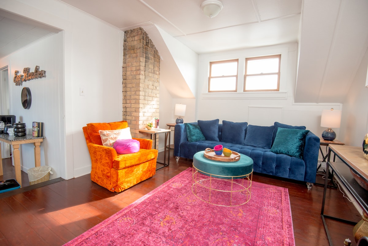 Vintage Mod Cottage with fireplace & soaking tub!