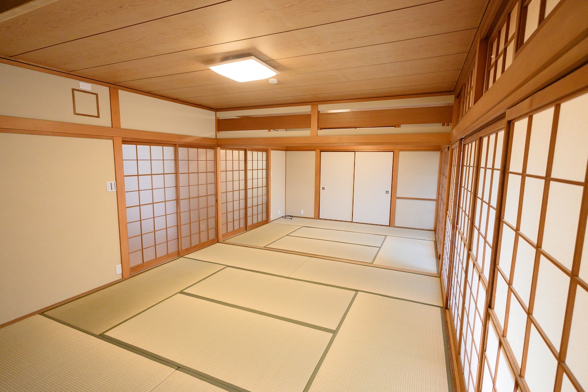 This house is a beautiful blend of traditional and modern making it convenient but also authentically Japanese. Mountains and ricefields are beside you, the Shimanto River can be heard. The ground floor is all yours. It's spacious with a large tatami sleeping room that can become two. The A/C is only in one room if the doors are closed. There is no central heating. Restaurants are within 10min or you can prepare local foods in your own equipped kitchen. It’s designed for long and short stays.