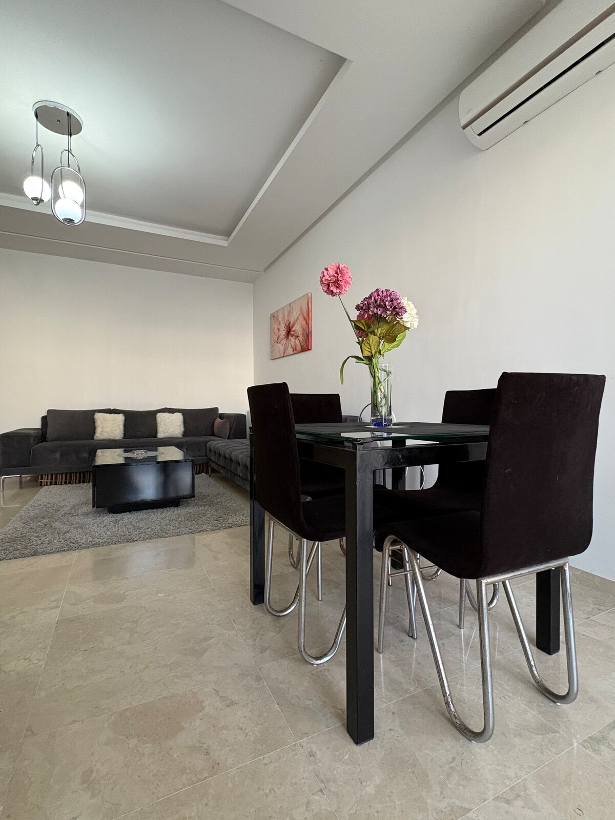 Ανακαλύψτε το άνετο διαμέρισμά μας S+2, που βρίσκεται στον 7ο όροφο με εκπληκτική θέα. Πλήρως εξοπλισμένο με νέες εγκαταστάσεις, βρίσκεται σε ιδανική τοποθεσία στην καρδιά της Aouina, κοντά σε τοπικά εστιατόρια και καφετέριες. Απέχει μόλις 11 λεπτά από το αεροδρόμιο Τύνιδα-Καρχηδόνα, το διαμέρισμα διαθέτει επίσης δύο ανελκυστήρες και χώρο στάθμευσης. Απολαύστε μια ζωντανή και ασφαλή γειτονιά, με ίντερνετ οπτικών ινών και συνδρομή IPTV. Ιδανικό για μια άνετη και βολική διαμονή.