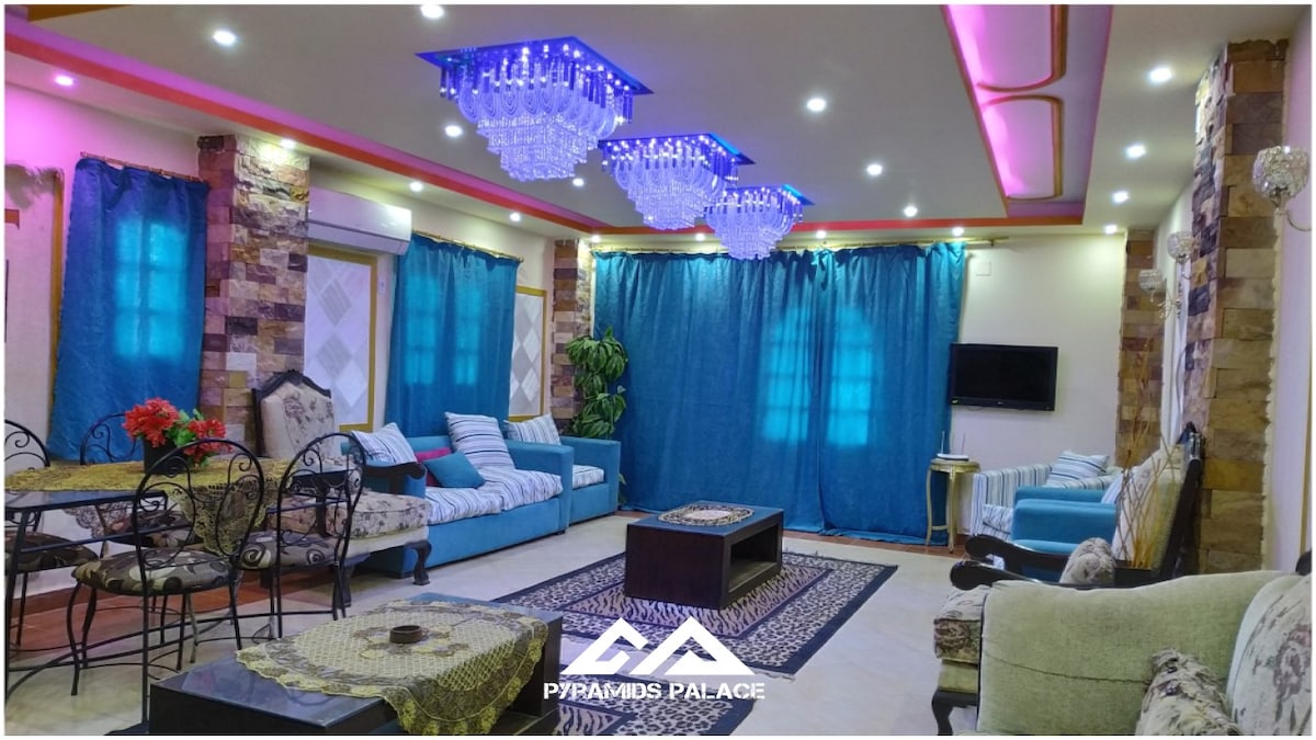 PS. Plz if you have tours booked online in Egypt..you will be asked nicely to provide a copy of your tour permit to report it to the tourist office according to the tourist police latest instructions.. thanks Deluxe apartment is located in the most important street in the pyramids area, with an amazing panoramic pyramids view, the apartment is in the 6th floor with 2 elevators in the building The apartment has a kitchen and all rooms have A/C and private bathrooms.