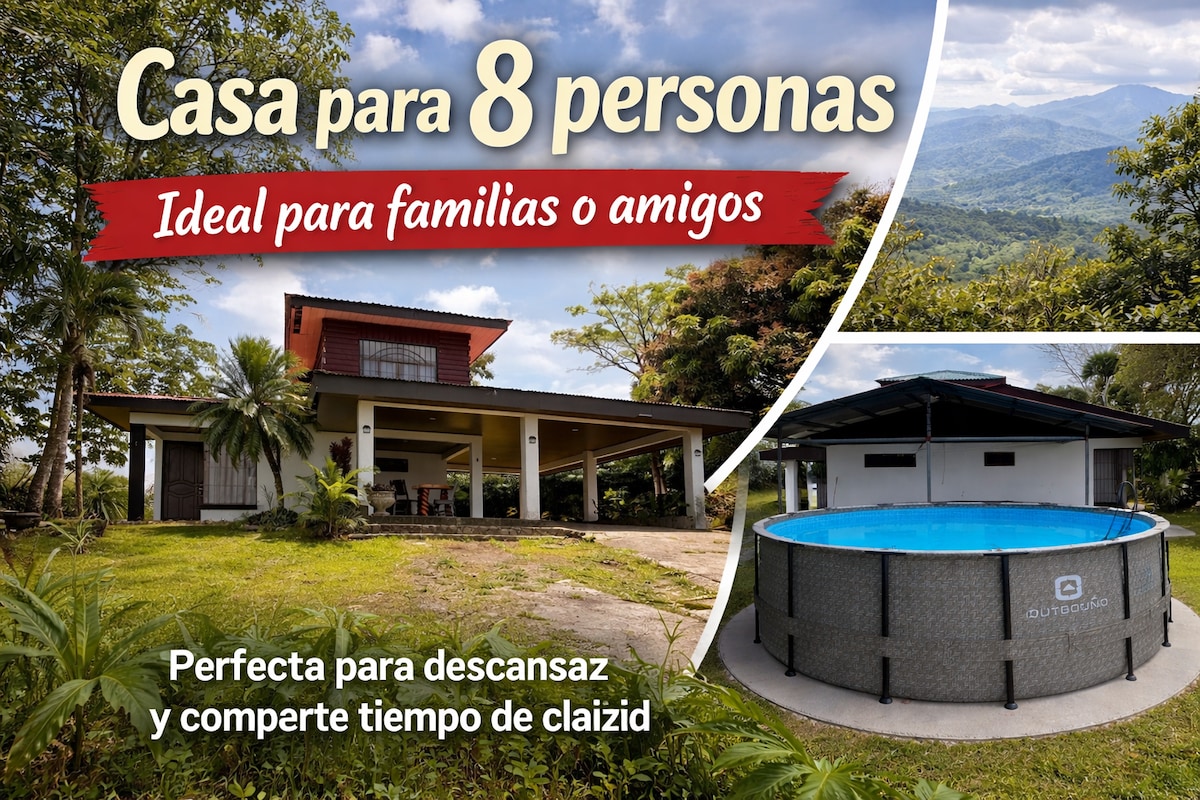 Χαλαρώστε ως ζευγάρι ή οικογένεια σε ένα ήσυχο και όμορφο σπίτι που περιβάλλεται από έναν πράσινο κήπο και με ιδιωτική πισίνα. Παρατηρήστε από τον κήπο σας τη θέα του μεγαλοπρεπούς ηφαιστείου Arenal με το φλιτζάνι του καφέ σας το πρωί. Το σπίτι βρίσκεται σε μια ήσυχη και ήσυχη πόλη, μόλις 5 λεπτά από τη Λα Φορτούνα. Φτάστε εύκολα στον καταρράκτη Λα Φορτούνα, στα θερμά λουτρά και σε αμέτρητα άλλα όμορφα μέρη και δραστηριότητες στη γύρω απέραντη φύση. Μη διστάσετε να ρωτήσετε για προτάσεις! Pura vida!