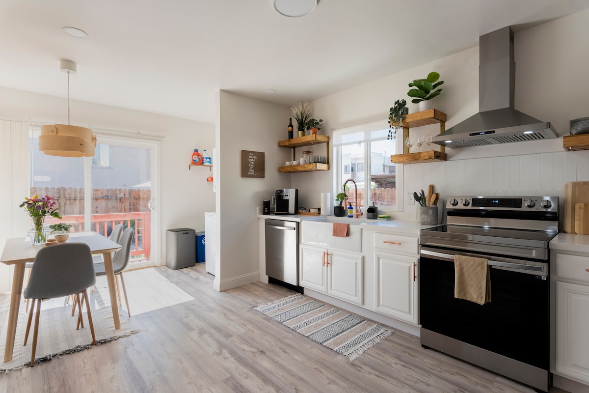 875 τετραγωνικά πόδια, 2 υπνοδωμάτια και 1 μπάνιο, πρόσφατα ανακαινισμένο σε γοητευτική γειτονιά. 75" έξυπνη τηλεόραση με streaming Peacock. Μόνο θέρμανση (το κλιματιστικό δεν είναι συνηθισμένο στη γειτονιά), wifi internet. Πλήρης κουζίνα, συμπεριλαμβανομένου φούρνου μικροκυμάτων και πλυντηρίου πιάτων. Το πλυντήριο και το στεγνωτήριο βρίσκονται σε ξεχωριστό γκαράζ. Ιδιωτικός δρόμος για τους επισκέπτες. Πολύ κοντά σε παντοπωλεία με βιολογικά προϊόντα, ιαπωνική ασιατική αγορά και πολλά τοπικά εστιατόρια. 24ωρη γυμναστική ακριβώς απέναντι.