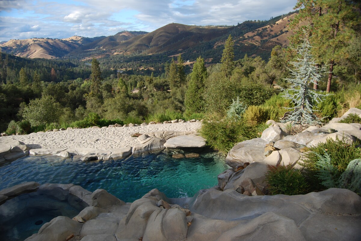 Αυτό το ταξιδιωτικό δωμάτιο είναι ένας διασκεδαστικός χώρος! Έχετε όλες τις παροχές που θα χρειαστείτε για να περάσετε υπέροχα. Υπάρχει επίσης πανοραμική θέα στην κοιλάδα Coloma/Lotus και στον ποταμό American από το ιδιωτικό μπαλκόνι/αυλή σας. Υπάρχει μια εποχιακή πισίνα, καταρράκτης και αμμώδης παραλία που την περιβάλλει. Υπάρχει επίσης ένα υδρομασάζ όλο το χρόνο, διαθέσιμο μόνο με κράτηση.