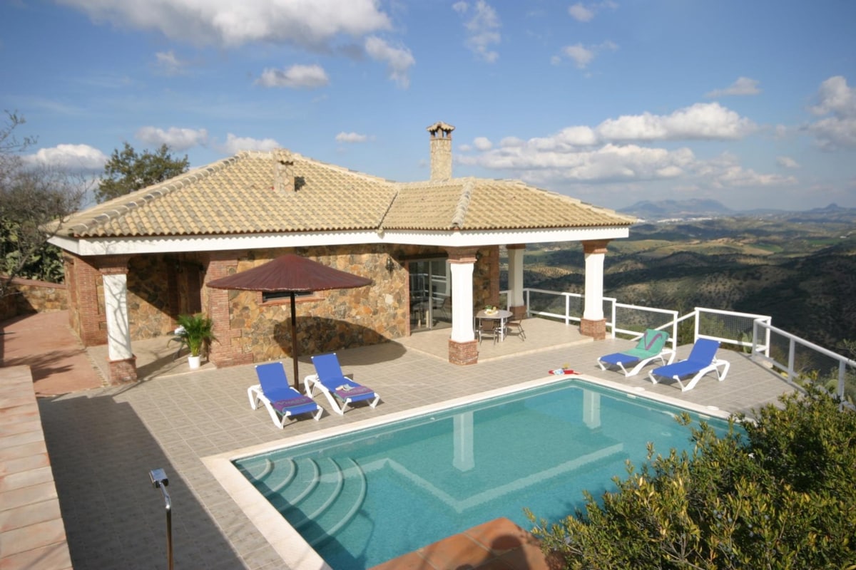 Εντυπωσιακή βίλα που βρίσκεται μόλις 1 χιλιόμετρο από τη Ronda, με ιδιαίτερη προσοχή στη λεπτομέρεια σε όλη την έκταση των 10.000 τ.μ. της. Βυθιστείτε σε ένα μοναδικό αγροτικό περιβάλλον όπου μπορείτε να απολαύσετε προνομιακές απόψεις της πόλης, να χαλαρώσετε στους κήπους, στο σολάριουμ, στο μπάρμπεκιου και στην ιδιωτική πισίνα. Διαθέτει ένα άνετα προσαρμοσμένο και διακοσμημένο κατάλυμα με προσοχή στην παραμικρή λεπτομέρεια για να κάνει τη διαμονή σας αξέχαστη: αυθεντικά έπιπλα σε στυλ Rondeño, ανεμιστήρες οροφής, πλήρως εξοπλισμένη κουζίνα, ντους με καταιγίδα, κλιματισμό ...