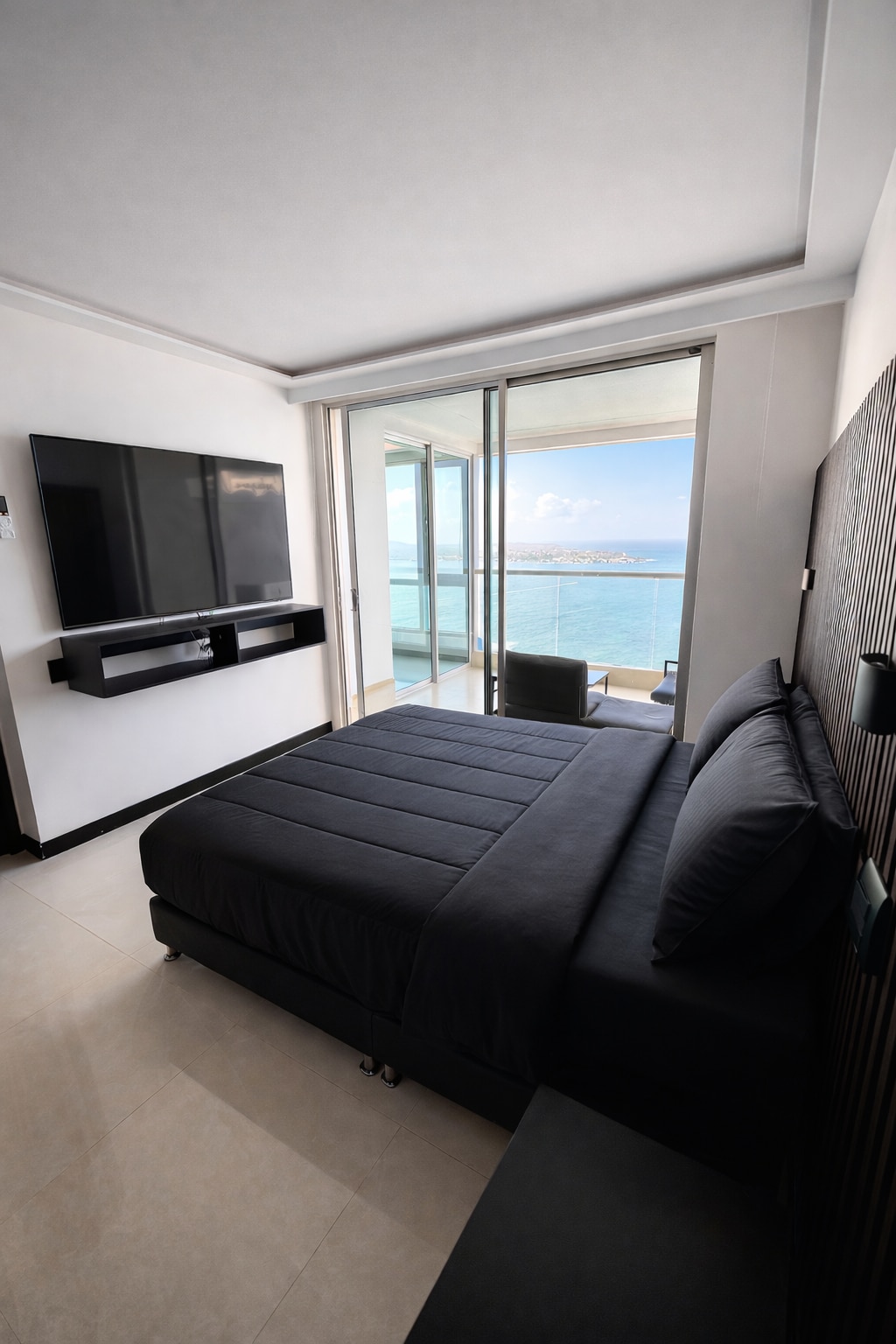 Wake up above Cartagena in your private penthouse oasis on the 22nd floor, where ocean breeze, golden sunrise, and city lights create an unforgettable stay. Located in the exclusive El Laguito area, you’re just a short walk from Cartagena’s most beautiful beaches and only minutes away from the vibrant Historic Center by taxi - yet far enough to enjoy peace, privacy, and stunning panoramic views. The Space This beautifully renovated penthouse combines modern comfort with a breathtaking settings