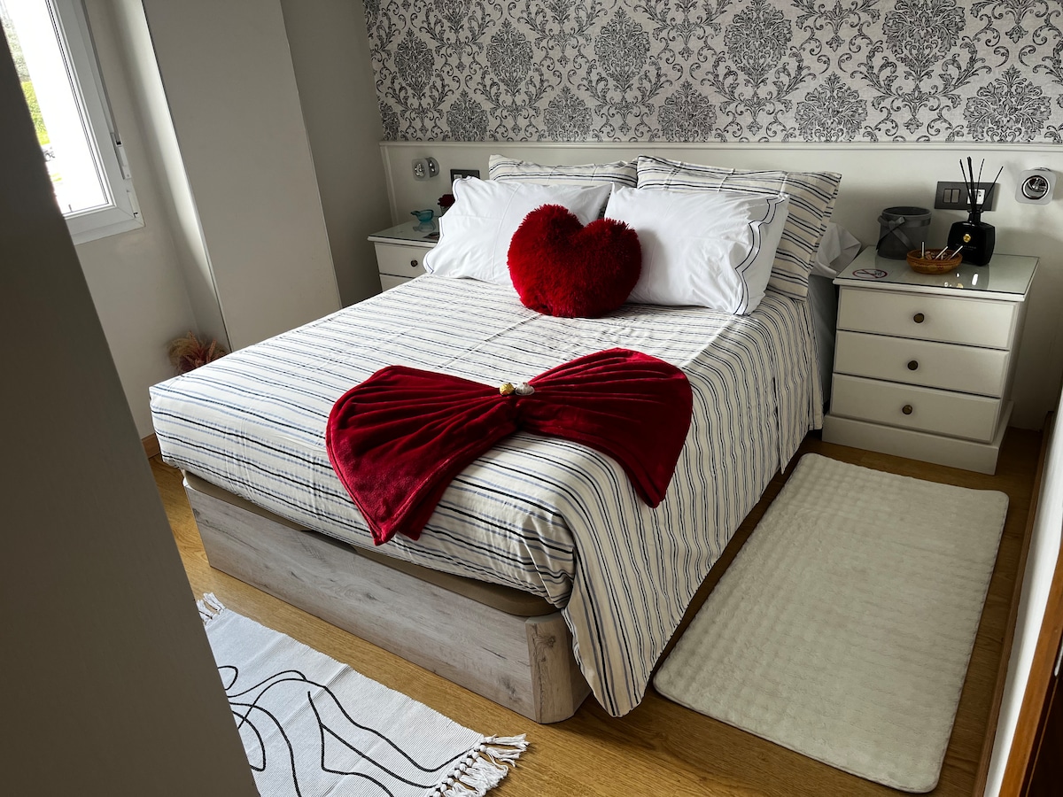 Διώροφη εξοχική βίλα στο Οβιέδο, 20 λεπτά με τα πόδια από το κέντρο, στην περιοχή της πλαγιάς του όρους Ναράνκο, σε απόσταση αναπνοής από την όμορφη φινλανδική πίστα. Πρόσφατα ανακαινισμένο σπίτι, με ένα μεγάλο τζακούζι στο δωμάτιο και ένα μεγάλο και άνετο διπλό κρεβάτι που θα κάνει τη διαμονή σας μοναδική και διαφορετική. Δύο μπάνια, πλήρως εξοπλισμένη κουζίνα με Nespresso και φωτεινό σαλόνι-τραπεζαρία. Έξυπνη τηλεόραση με Netflix. Check-in με κωδικό ή/και ψηφιακό κλειδί, για να κάνετε τη διαμονή σας πιο ιδιωτική.