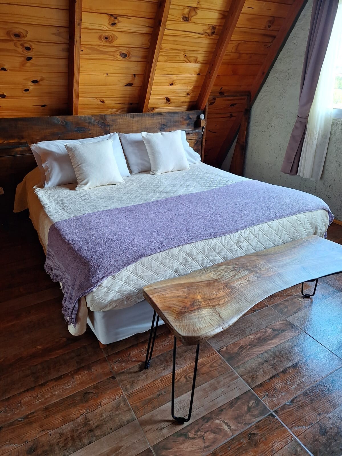 Ευρύχωρο ξυλόσπιτο δύο ορόφων 50 μέτρα από ένα κύριο σπίτι σε 2 εκτάρια γης Στο ισόγειο: * με σόμπα αργής καύσης και θερμάστρα * τραπεζαρία * εξοπλισμένη κουζίνα * Πλυντήριο ρούχων και καταψύκτης. * Υπνοδωμάτιο με πλαίσιο κρεβατιού 1,60 και θερμάστρα * μπάνιο με ντους. Στον ημιώροφο: * 2 μονές βάσεις κρεβατιού και επιλογή για επιπλέον στρώματα Εξωτερικός χώρος: * βεράντα στον κήπο * ψησταριά "chulengo" * τραπέζι με ενσωματωμένους πάγκους