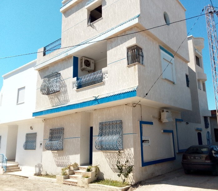 Spacious 2-level beachview villa in Chatt Ezzhour. 3 bedrooms + suite, 2 bathrooms, full kitchen, AC in all rooms. Multiple terraces with stunning beach views, exclusive rooftop access for stargazing. Walking distance to Tunisia's most beautiful beach. Perfect family retreat with modern amenities and authentic coastal charm. Unforgettable Mediterranean experience awaits!