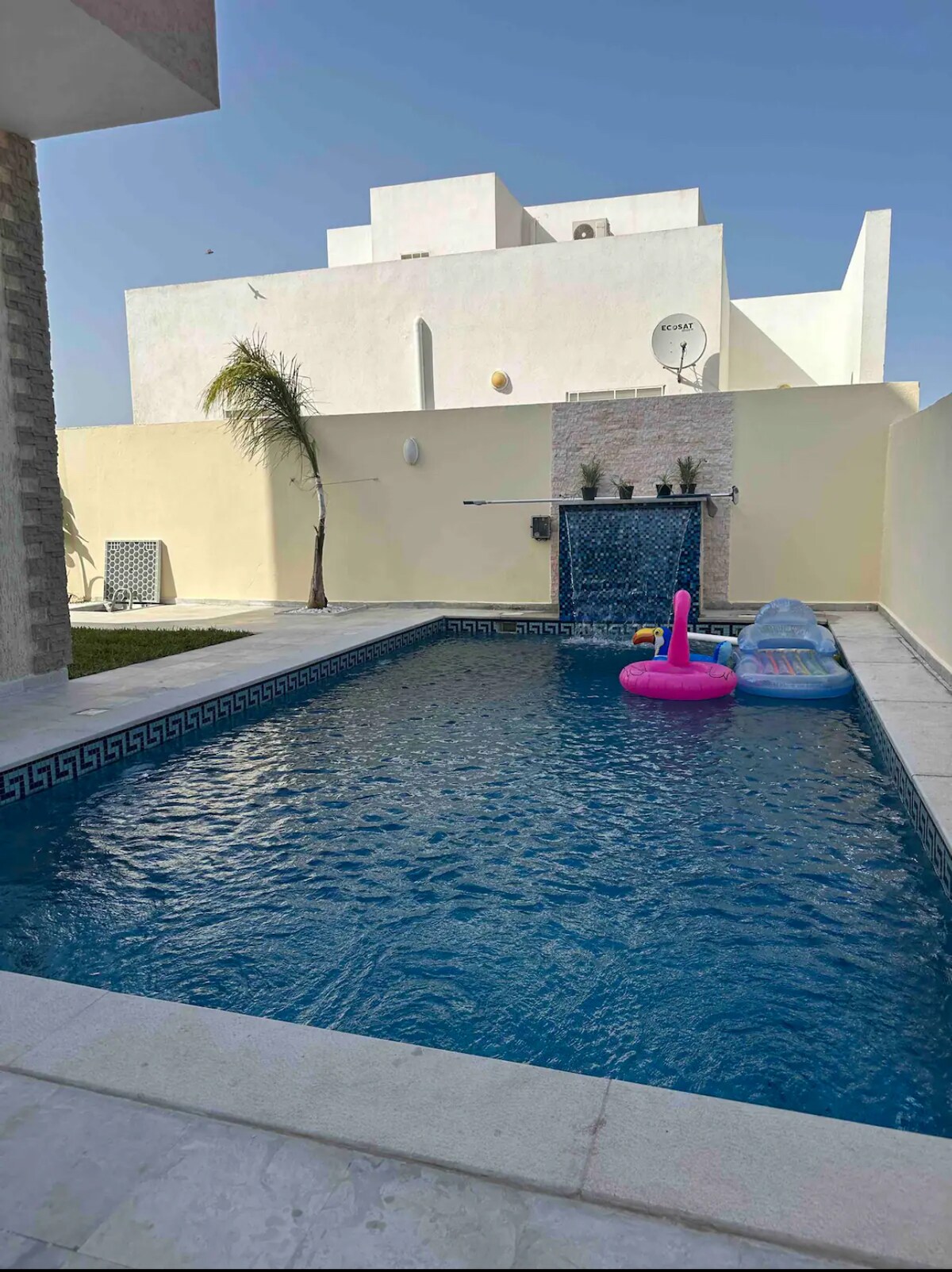 Offrez-vous un séjour relaxant dans notre villa spacieuse à 5 min à pied de la Magnifique plage vierge de Chatt Ezzouhour à Korba. et à 25 min de Kélibia. Située dans une zone paisible, elle comprend 2 salons, 2 cuisines équipées, 4 chambres, 3 salles d'eau. À l'extérieur : piscine 7x4.5, terrasse avec pergola, barbecue, douche extérieure, jardin, abri des voitures. Climatisation et Wi-Fi inclus (entièrement). Pour infos/réservation : Contactez Souhail Jouini