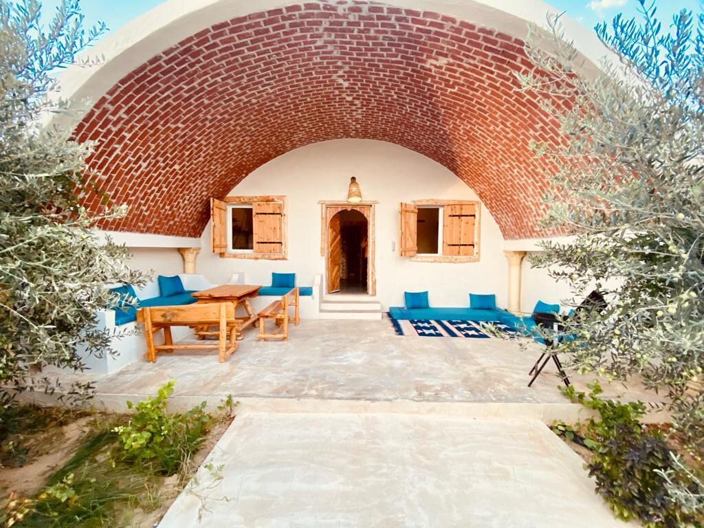 Une belle ambiance, un décor tunisien, une plage de rêve, un beau jardin...un cadre agréable à 10 min à pied d’une plage vierge et magnétique, un paysage splendide au milieu des champs, très calme et prêt d’un joli parc, les flamants roses au alentour, parfait pour des vacances relaxantes.