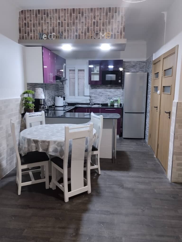 Διαμέρισμα F3 66 m2 με όλες τις ανέσεις, ήσυχο και φωτεινό, πλήρως ανακαινισμένο με ξύλινο πάτωμα. Άτυπη και χειροποίητη διακόσμηση. Αποτελείται από: • Καθιστικό με εξοπλισμένη κουζίνα • Σαλόνι (γωνιακός καναπές με τηλεόραση) • 2 υπνοδωμάτια (διπλό κρεβάτι και κουκέτα, συρταρωτό κρεβάτι και κρεβάτι μωρού) • 2 κλιματιστικά • WIFI, νερό 24 ώρες το 24ωρολογιακά λευκά είδη Σε ένα σύγχρονο συγκρότημα κατοικιών "Ryad city III" με ασφαλή είσοδο (και έξοδο (με κάρτα, κάμερα και φύλακα), στον 5ο όροφο με ασανσέρ, με τζαμί στο κάτω μέρος του συγκροτήματος