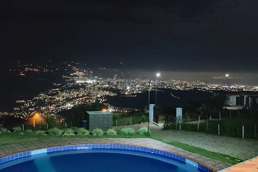 Hermosas cabañas amobladas con vista panorámica a Bucaramanga, con agradable clima ideal para compartir momentos inolvidables en familia o con amigos. ubicada a 4 km después del Aeropuerto palo negro de Bucaramanga. La parcela cuenta con piscina romana, cancha voley playa o fútbol playa, cancha de bolo criollo, zona de fogata, BBQ, hamacas, juego de rana, juegos de mesa, WiFi, zona camping, parqueaderos. Acomodación doble para 14 personas