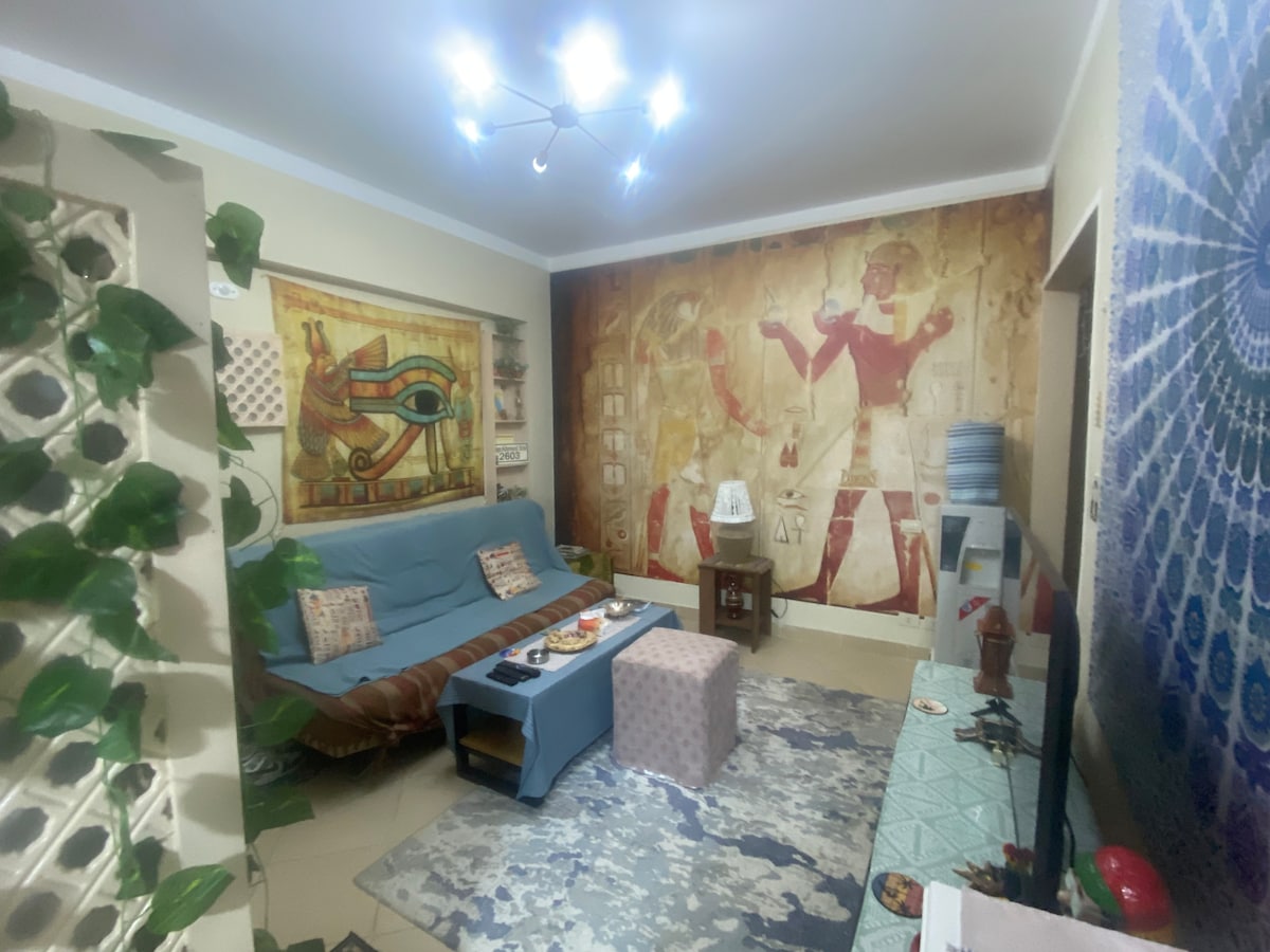 One-bedroom apartment, dining room, 2 terraces, kitchen, bathroom, living room, water heater, washing machine, fridge, oven,stove, smart TV، Located in Las Cabanas Resort, , Quseir Road, Marsa Alam, a 2-minute walk to a beautiful private beach with blue waters for swimming and snorkeling,beach bar, billiards, and swimming pool near the apartment. A clubhouse, Abu Ashra supermarket, laundry, bazaars, and shops. It's a 20-minute drive to Marsa Alam Airport, Porto Ghalib, and Quseir.