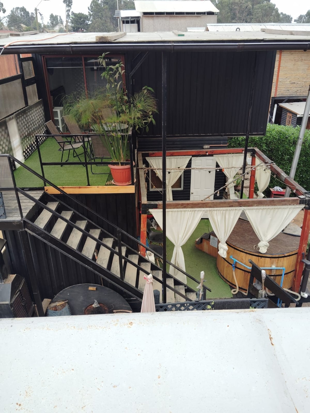 Hermoso lugar en medio de la naturaleza, con una hermosa vista al mar, hermosos jardines con espacios compartidos como quinchos, terrazas, mesas, que permiten la interacción con los demás huéspedes. En este lugar podrás disfrutar de hermosas puestas de sol, tener un descanso placentero y estar cerca de la playa y lugares de interés, como por ejemplo la Casa Museo de Pablo Neruda a tan solo tres kilómetros, además Rio QUEBRADA DE CORDOVA con un circuito de trekking.