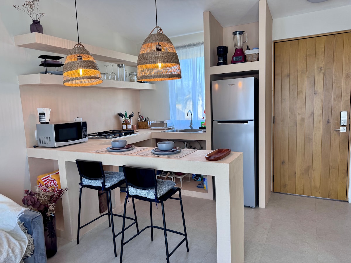 Απολαύστε ένα άνετο και εντελώς νέο στούντιο, σχεδιασμένο για να σας προσφέρει άνεση και πρακτικότητα κατά τη διάρκεια της διαμονής σας. Ιδανικό για δύο άτομα, με δυνατότητα φιλοξενίας ενός τρίτου σε καναπέ-κρεβάτι. Μόνο 10 λεπτά από τα σούπερ μάρκετ και την παραλία, ώστε να μπορείτε να απολαύσετε τα καλύτερα της περιοχής. Θα χαρούμε να σας βοηθήσουμε να κάνετε την εμπειρία σας αξέχαστη, μπορούμε να σας κάνουμε προτάσεις ή να σας υποστηρίξουμε με εξοπλισμό παραλίας για να αξιοποιήσετε στο έπακρο τη διαμονή σας.