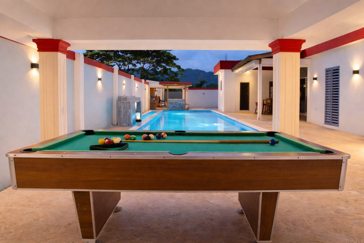 Αποδράστε σε μια ευρύχωρη και κομψή βίλα με 4 υπνοδωμάτια και 4 μπάνια, ιδανική για οικογένειες, παρέες, πάρτι ή εκδηλώσεις. Απολαύστε ιδιωτική πισίνα, τζακούζι και μπαρ που περιβάλλεται από φύση. Μόνο 1 ώρα και 15 λεπτά από τον Άγιο Δομίνικο και 1 ώρα από το αεροδρόμιο Las Américas. Σε κοντινή απόσταση θα βρείτε μια αυθεντική φάρμα κοκορομαχίας που προσθέτει μια τοπική και γραφική πινελιά στην εμπειρία σας.