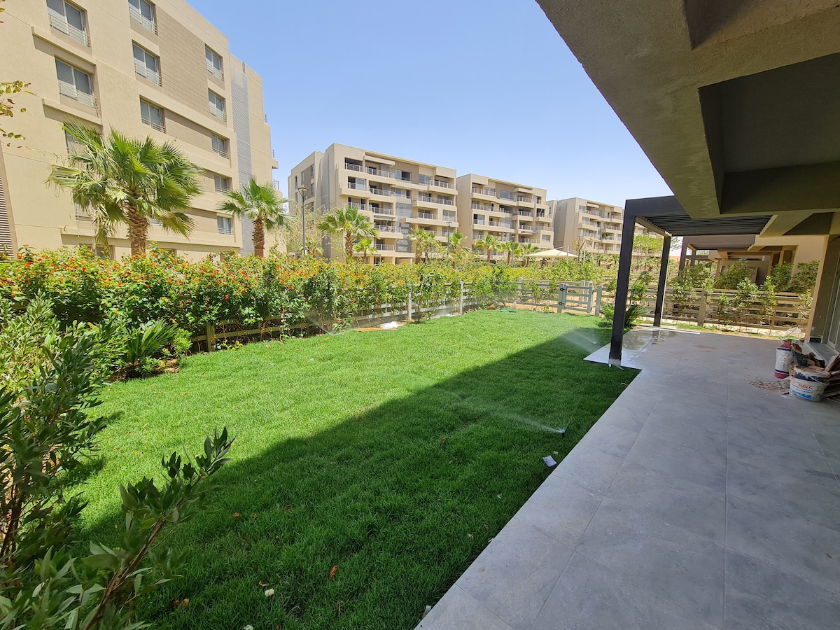This special place is close to everything, distinctive fully furnished apartment in Madinaty privado compound Unit specifications: - 2 bedrooms - 1 bathroom - Fully equipped kitchen - balcony overlooking the gardens - All electrical appliances - Wifi - Fully Acs Madinaty features: - A collection of restaurants and cafes - Commercial malls - Gym - Parking - Pets allowed - 24/7 security location: - Minutes from craft zone, all season park mall, east hub mall - 25 minutes from the airport