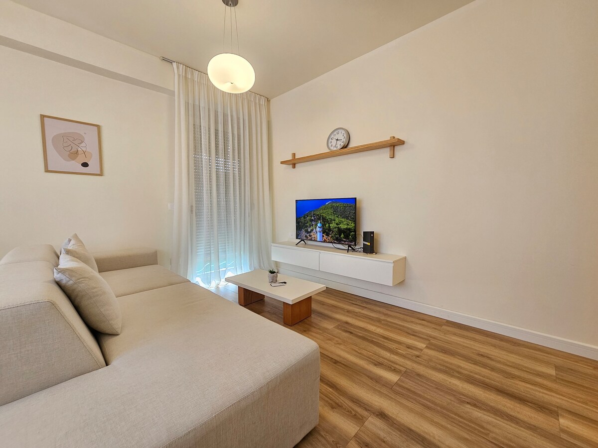Καλώς ήρθατε στο διαμέρισμά μας που βρίσκεται κοντά στο πολυσύχναστο κέντρο των Τιράνων! Αυτός ο γοητευτικός χώρος διαθέτει άφθονο φυσικό φως, το οποίο φωτίζει τα έπιπλά του και δημιουργεί μια ζεστή και φιλόξενη ατμόσφαιρα. Το διαμέρισμα διαθέτει 2 υπνοδωμάτια, κομψό μπάνιο, πλήρως εξοπλισμένη κουζίνα και ένα ζεστό σαλόνι για να χαλάρωση μετά από μια μέρα εξερεύνησης της πόλης. Βρίσκεται σε προνομιακή θέση, λίγα μόλις βήματα από τους πολυσύχναστους δρόμους των Τιράνων.