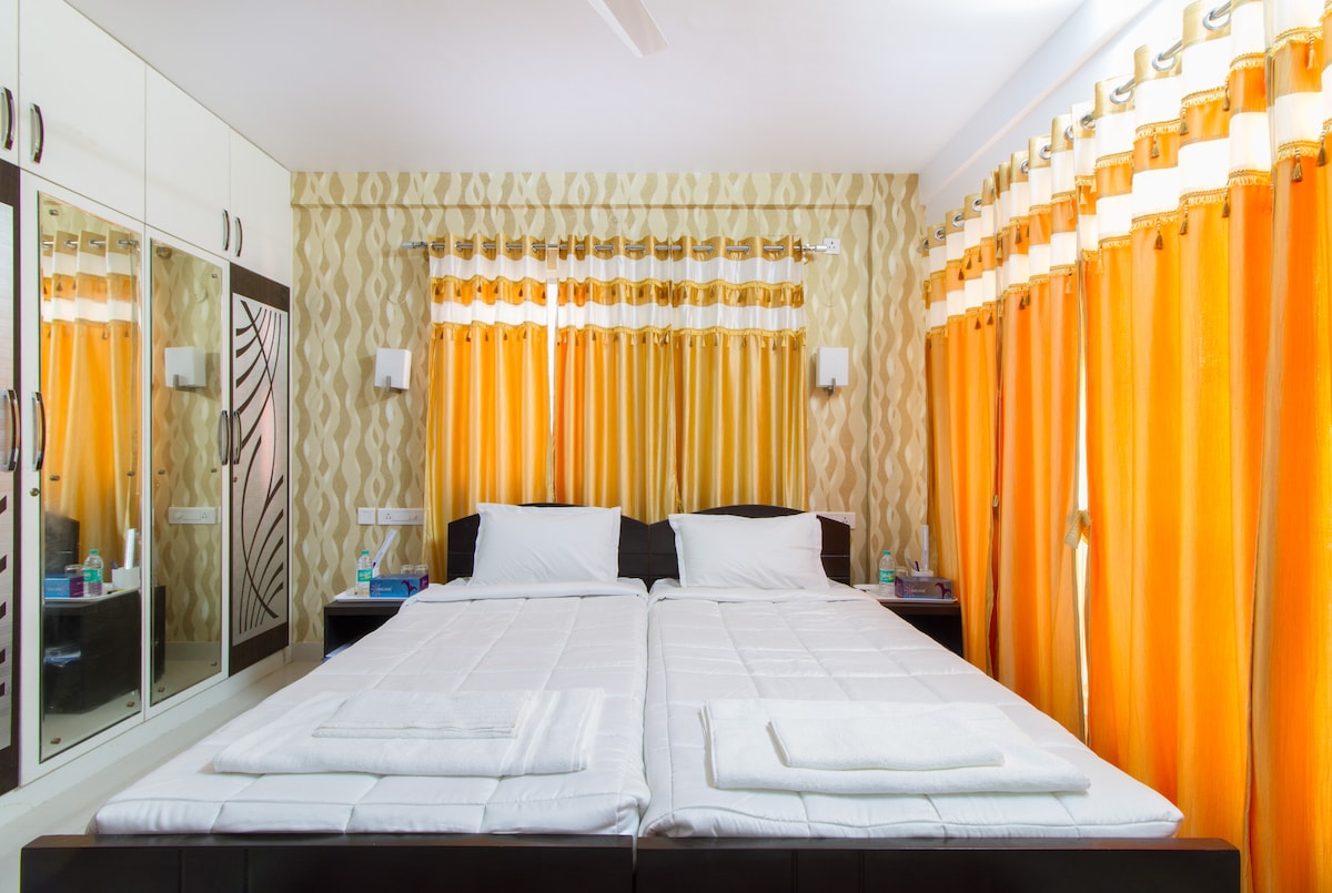 Experience Luxury & Comfort at our Stylish 2BHK apartment Near Manyata & Hebbal Welcome to our thoughtfully designed luxury 2BHK apartment, where premium comfort meets modern aesthetics. Whether you're in Bangalore for work, a family vacation, or a long-term stay, our home is designed to make you feel at ease the moment you step in. We take pride in offering a hotel-like experience with the warmth of home. Our apartment is cleaned and sanitized thoroughly before every guest’s arrival.