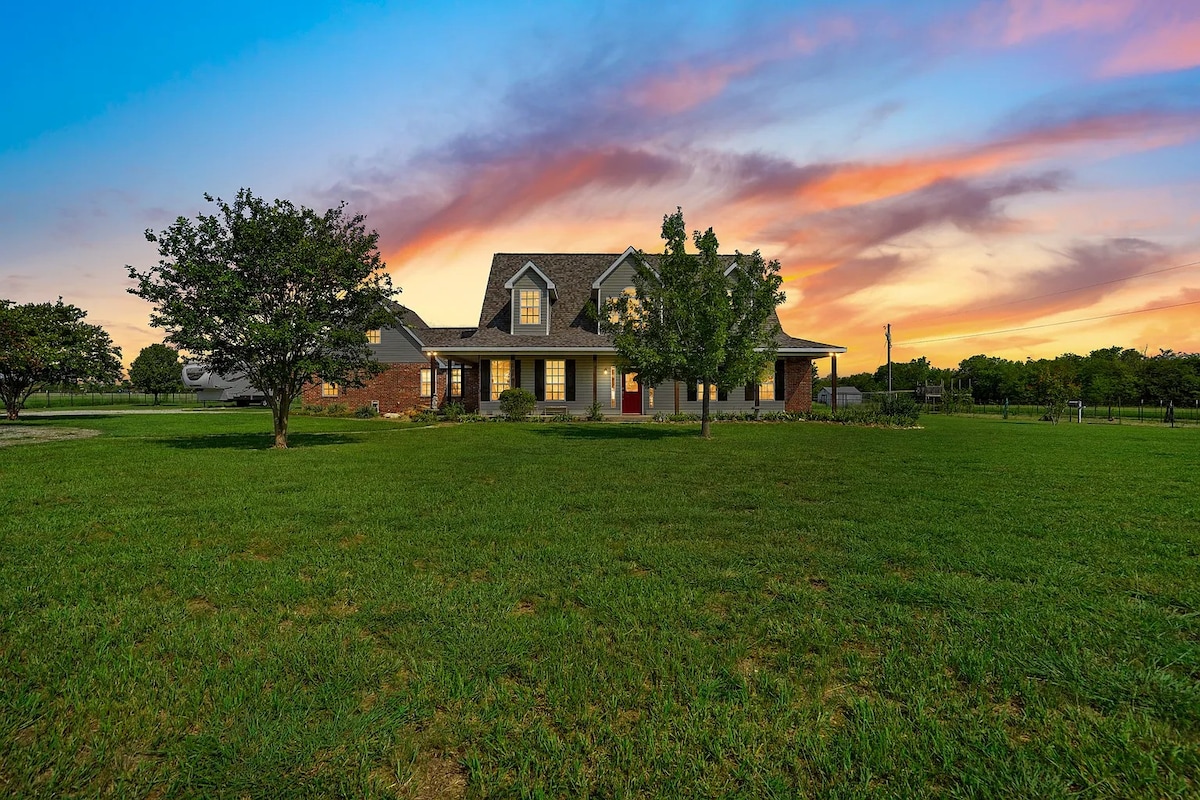 Ελάτε να νιώσετε άνετα στο Elmwood, μια μοντέρνα αγροικία με πισίνα και υδρομασάζ, σε μια εξαιρετική τοποθεσία για να επισκεφθείτε το Waxahachie ή την περιοχή της κομητείας Ellis! Αυτό το όμορφα επιπλωμένο σπίτι διαθέτει 4 υπνοδωμάτια, ένα άνετο τζάκι, ψησταριά εξωτερικού χώρου, επιτραπέζια παιχνίδια και πολλά άλλα. Λίγα λεπτά από την πλατεία Waxahachie, όπου υπάρχουν εστιατόρια, καταστήματα και ζυθοποιεία, ενώ είναι πολύ κοντά και στον αυτοκινητόδρομο! Βρίσκεται σε έναν ήσυχο δρόμο ακριβώς δίπλα σε ένα πάρκο με γήπεδο γκολφ φρίσμπι, μονοπάτια για τρέξιμο, γήπεδο μπάσκετ και πολλά άλλα!