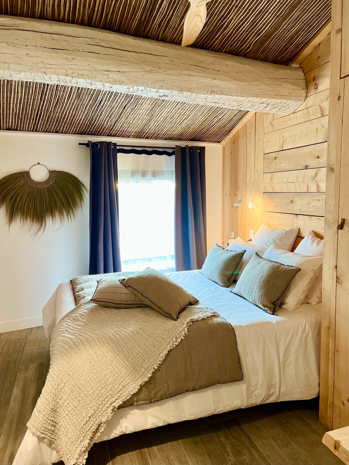 Όπως μια φωλιά, αυτό το άνετο δωμάτιο 18 τ.μ., με το σχέδιο εμπνευσμένο από τη φύση, το ακατέργαστο ξύλο και τους λευκούς τοίχους, προσφέρει τη γλυκύτητα μιας μποέμικης ζωής... Άνετα εξοπλισμένο με ένα υπέρδιπλο κρεβάτι ντυμένο με βαμβάκι και κλινοσκεπάσματα, τηλεόραση, μπάνιο με ιταλικό ντους, πιστολάκι για πετσέτες, πιστολάκι μαλλιών, βρίσκεται στο πάνω επίπεδο του σπιτιού και ανοίγει στον ουρανό και το αίθριο. Δωρεάν wifi. Περιλαμβάνεται υπηρεσία καθαριότητας. Πρόσβαση στο αίθριο, την πισίνα και το σαλόνι. Το πρωινό είναι προαιρετικό, 13,50 €.