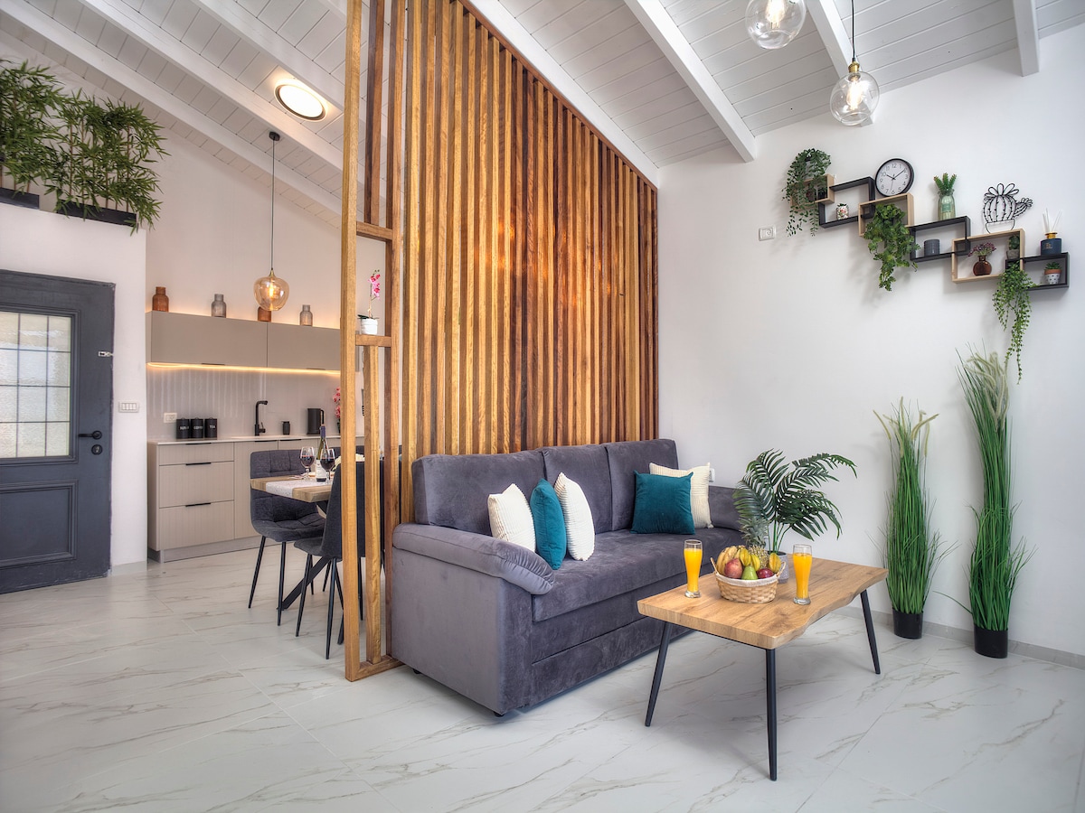 Unwind in this chic 4th-floor apt (walk-up) with country-modern style. Steps from Haifa's Baha'i Gardens (UNESCO site!), it offers comfort & location. Relax in the light-filled living area, cook in the kitchen, or unwind in the hot tub after exploring. The bedroom provides a peaceful escape. Haifa's culture awaits! Explore the Gardens, savor cafes, or delve into heritage centers. Mingle at nearby pubs. This Haifa gem offers an unforgettable stay. Book your getaway today!