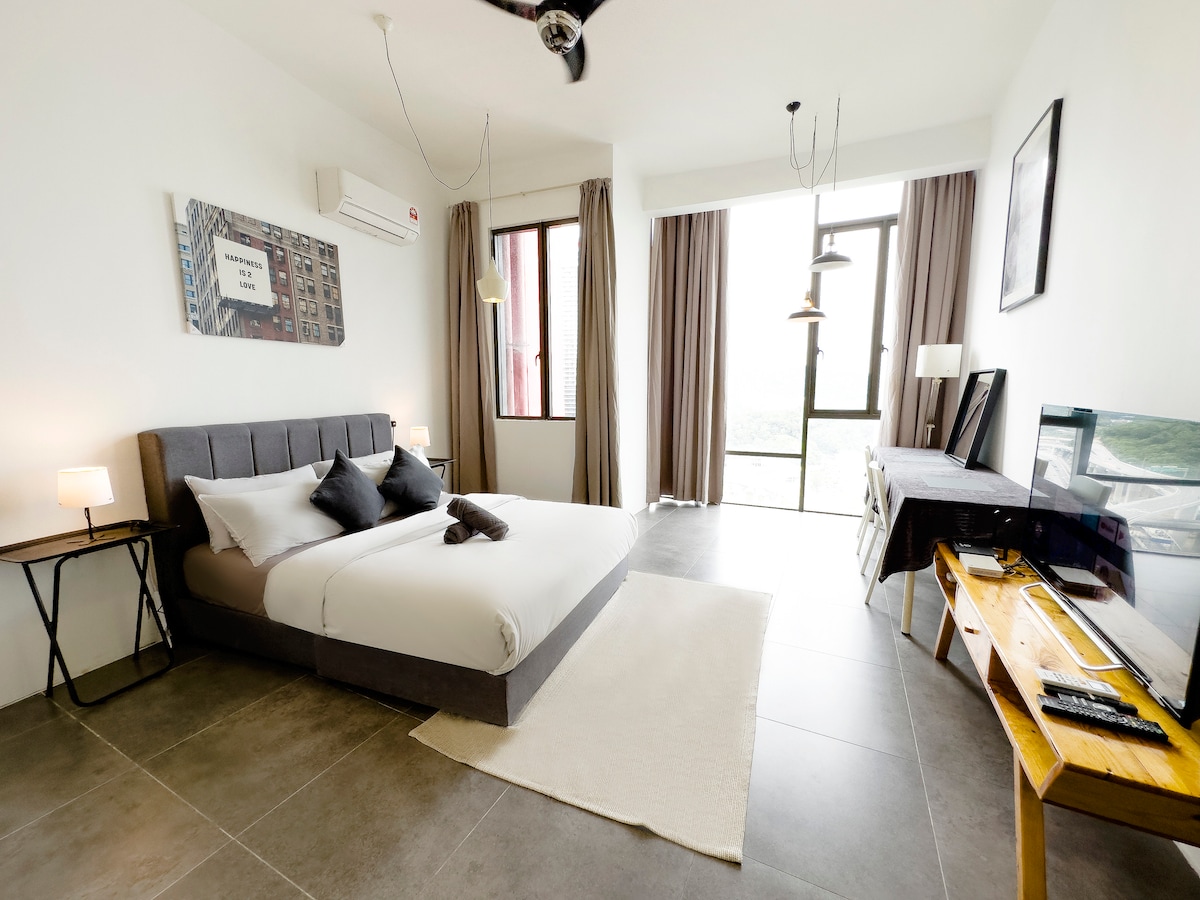 Αποδράστε σε αυτό το άνετο, αυτόνομο στούντιο στην καρδιά της Damansara Perdana, μόλις λίγα λεπτά με τα πόδια από το The Curve, το IKEA, καφετέριες και καταστήματα. Απολαύστε απόλυτη ιδιωτικότητα με υπέροχη θέα στην πισίνα, άνετο κρεβάτι queen size, χαλαρωτικά πουφ bean bag και γρήγορο ίντερνετ 200 Mbps με ίνες. Περιλαμβάνεται δωρεάν πάρκινγκ για ευκολία. Ιδανικό για ζευγάρια ή μεμονωμένους ταξιδιώτες που αναζητούν ηρεμία και άνεση. Συνδέεται καλά με την Κουάλα Λουμπούρ και τα αξιοθέατα της πόλης με τρένο και αυτοκινητόδρομο, κοντά στα κορυφαία εμπορικά κέντρα - το τέλειο μικρό αστικό καταφύγιο δίπλα στην πισίνα σας περιμένει!