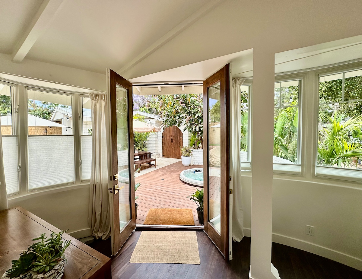 Ανεξάρτητο στούντιο 400 τ.μ. με πλήρως εξοπλισμένη κουζίνα, ιδιωτική βεράντα σεκόγιας και δική του είσοδο/πάρκινγκ. Μόλις ένα μίλι από την ακτή, το σπίτι απέχει 15-20 λεπτά με τα πόδια από την παραλία και 25 λεπτά με τα πόδια από το Encinitas, μια κλασική πόλη για σέρφινγκ στην παραλία. Εστιατόρια, ζωντανή μουσική και γραφικά καταστήματα βρίσκονται κοντά στον αυτοκινητόδρομο 101. Ο μεγάλος τροπικός κήπος έχει μονοπάτια πεζοπορίας και καθίσματα ιδανικά για να χαλαρώσετε. Η ιδιοκτησία είναι μια πραγματική όαση! Επιχειρηματική άδεια City of Encinitas #RNTL-007530-2017.