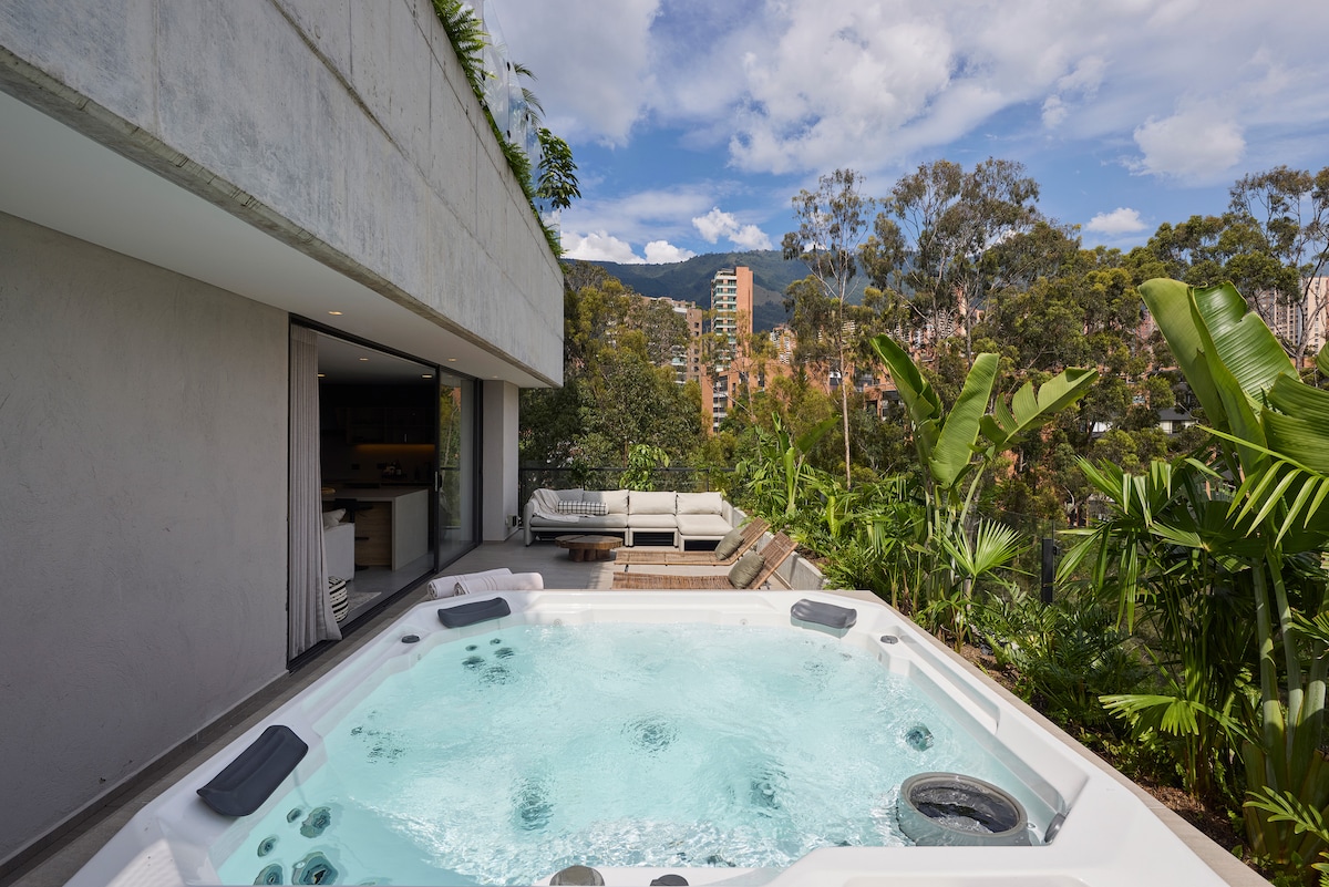 This incredible penthouse, just one block from Lleras Park, is ideal for exploring the city with your loved ones. Please note that due to its proximity to nightlife and the main road, some noise is to be expected, especially on weekends. King bed in the Master Suite High-speed Wi-Fi Outdoor grill Jacuzzi for 6 people Sonos sound system controllable from your personal phone Workspace Rain shower Balcony Equipped kitchen