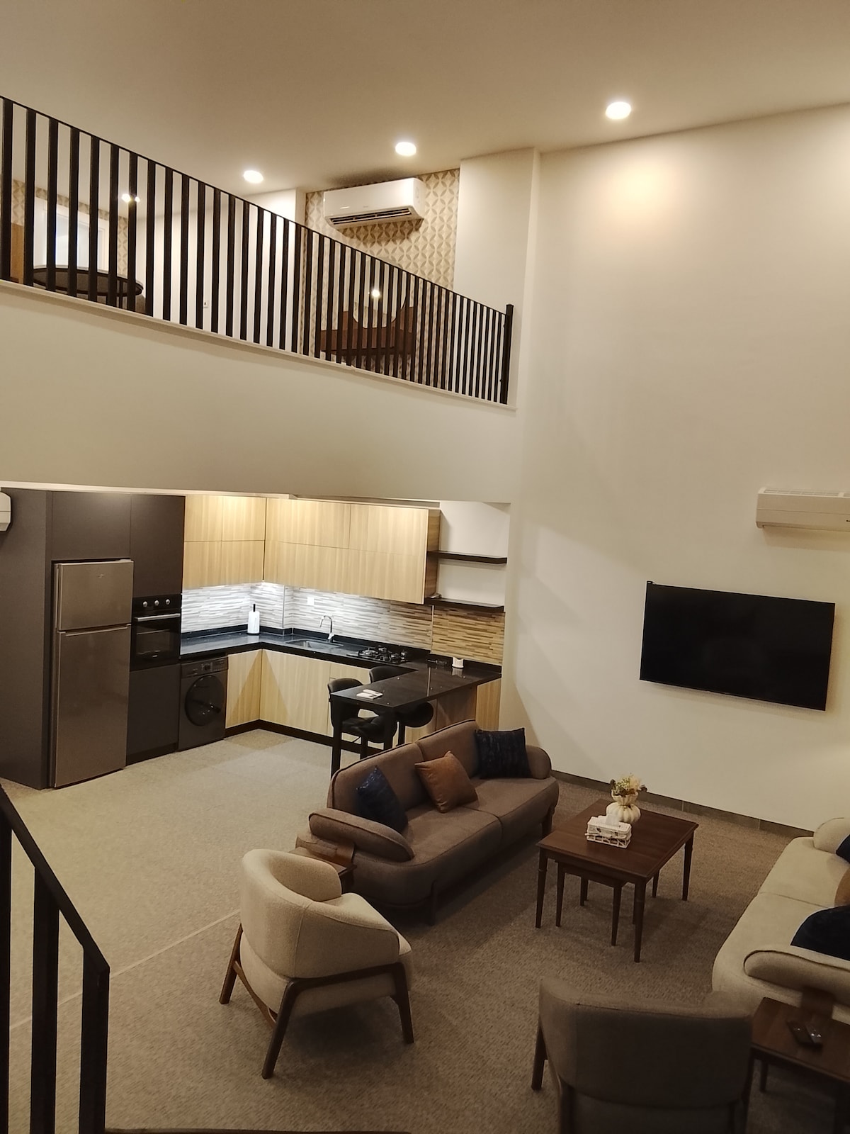 Stay in the heart of Erbil’s Golden Zone, surrounded by top-tier restaurants and nightlife. This stylish two-bedroom apartment (187 m2), features ensuite bathrooms, premium furnishings, curated art, a cinematic smart TV, and a cozy living room with a convertible bed. Enjoy a private balcony with swing chairs, great lighting, and a rich library for quiet moments. Comfort, culture, and convenience — all in one unforgettable stay. Find us on Insta for more information erbilluxeloft