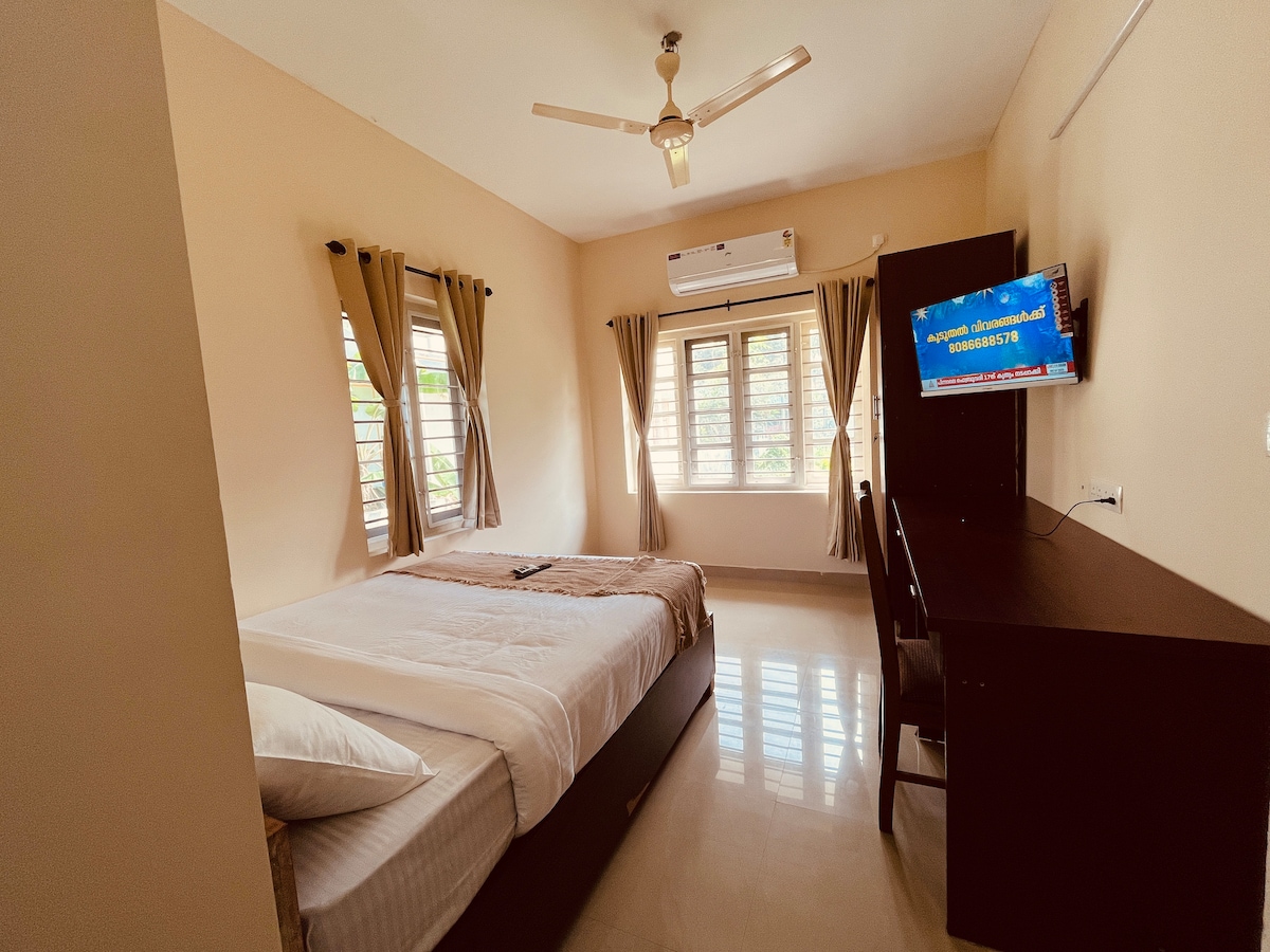 Welcome to Eleven Space Kochi located at Vazhakkala Kakkanad. Brand new air-conditioned Room with 250 Sqft. Distance: just 2 km from Kakkanad, 5 km from Infopark, 4 km from Edapally and 25 km from Kochi Airport. Ideal for couples, IT professionals, families, and business travelers. All AC rooms include hot water, towels, toiletries, TV with cable connection, free WiFi and power backup. Centrally located in Ernakulam for a comfortable and convenient stay in Kochi. 24X7 Caretaker service.