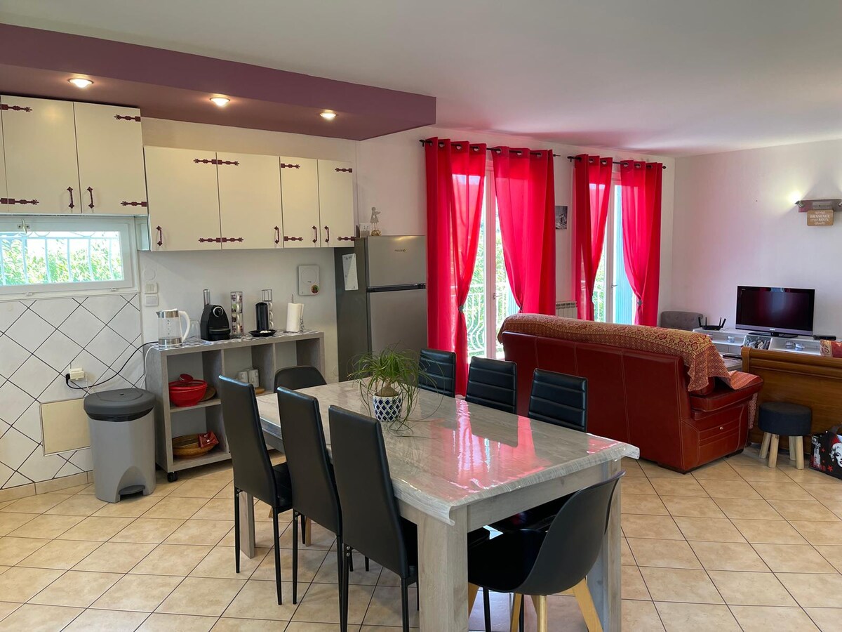 Καλώς ήρθατε στο εξοχικό CAMBON στο Erôme στην καρδιά του Ερμιτάζ, 10 λεπτά από την έξοδο του αυτοκινητόδρομου 13. La Viarhona για τις βόλτες σας με το ποδήλατο, διάφορα μονοπάτια πεζοπορίας. Σας καλωσορίζουμε σε ένα σπίτι 100 τ.μ. που αποτελείται από μια εξοπλισμένη κουζίνα ανοιχτή σε σαλόνι με καναπέδες, 2 υπνοδωμάτια κρεβάτι 140 οπότε 1 με ιδιωτικό μπάνιο, 1 υπνοδωμάτιο 2 κρεβάτια 90 ή κρεβάτι 180, 1 υπνοδωμάτιο 2 κρεβάτι 80 ή κρεβάτι 160, 1 μπάνιο με τουαλέτα καθώς και ξεχωριστή τουαλέτα. Ιδιωτικός διαμορφωμένος κήπος.