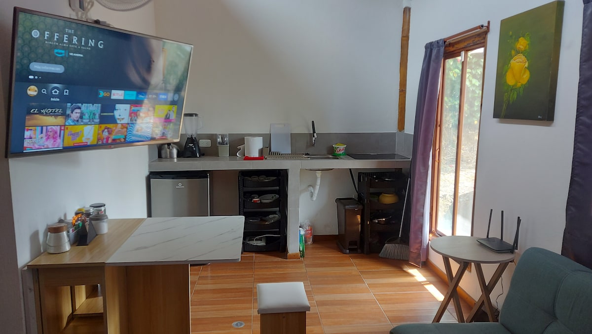 Χαλαρώστε με όλη την οικογένεια σε αυτό το ήσυχο μέρος μέσα στη φύση, με ζεστό κλίμα και υπέροχους κοινόχρηστους χώρους, το ιδανικό μέρος για να ξεκουραστείτε από τον θόρυβο της πόλης. Βρίσκεται σε μια περιοχή με υγρό τροπικό κλίμα, η θερμοκρασία της οποίας κυμαίνεται μεταξύ 21 και 30 βαθμών Κελσίου, είναι ιδανικό μέρος για την παρατήρηση πτηνών και άλλων ειδών πανίδας, όπως αμφίβια, έντομα κ.λπ. ΣΗΜΕΙΩΣΗ: η κουζίνα και το ντους είναι ηλεκτρικά, οπότε ενδέχεται να μην είναι διαθέσιμα λόγω διακοπών ρεύματος.