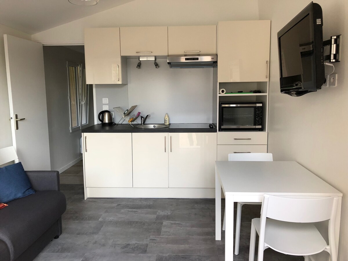 Φωτεινό duplex στον 1ο και τελευταίο όροφο ενός σπιτιού. Εντελώς καινούριο και επιπλωμένο, θα ανακαλύψετε έναν μεγάλο ανοιχτό χώρο διαβίωσης που προσφέρει μια εξοπλισμένη κουζίνα¹, τραπεζαρία, σαλόνι, ξεχωριστό WC και έπιπλα αποθήκευσης. Το σαλόνι διαθέτει έναν διπλό καναπέ-κρεβάτι Στον επάνω όροφο, ένα υπνοδωμάτιο με διπλό κρεβάτι, γκαρνταρόμπα και μπάνιο (τουαλέτα και πλυντήριο ρούχων). WiFi ¹ ψυγείο, φούρνος, εστία, απορροφητήρας, φούρνος μικροκυμάτων, πλυντήριο πιάτων, καφετιέρα, βραστήρας, μαγειρικά σκεύη και πιάτα